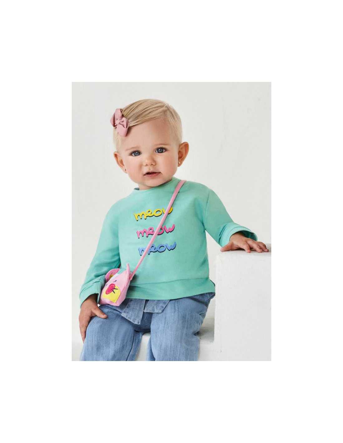 Sudadera manga larga felpa bebe niña , adorno bolso gato .