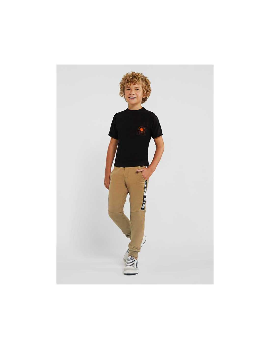 Pantalón largo felpa chico de talla 10 a 18 años .Adorno cintas deportivo .