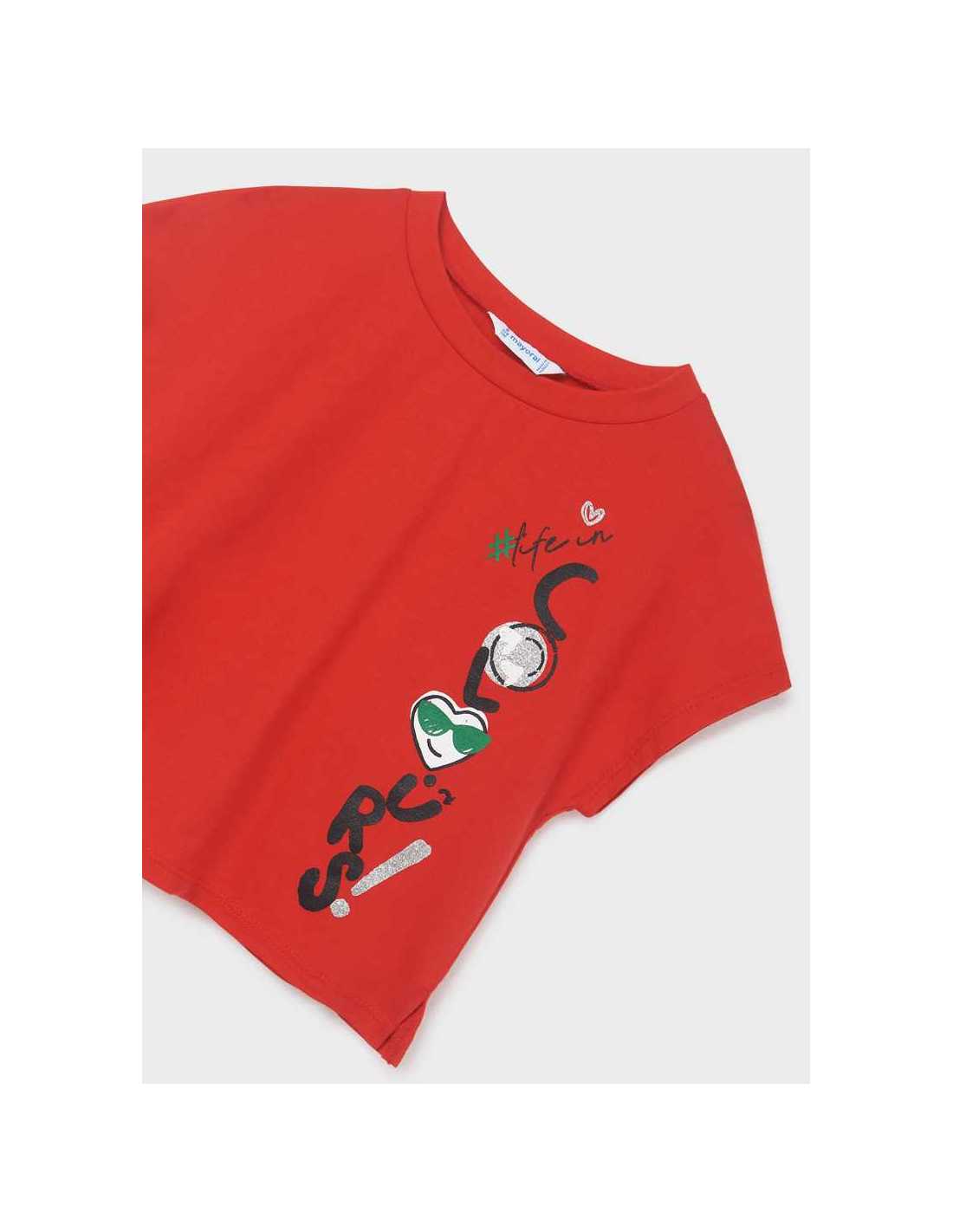 Camiseta de manga corta para chica. Cuello redondo. Tejido 100% algodón. Diseño estampado.