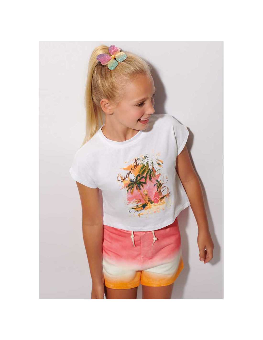 Conjunto de camiseta y short a juego para chica.