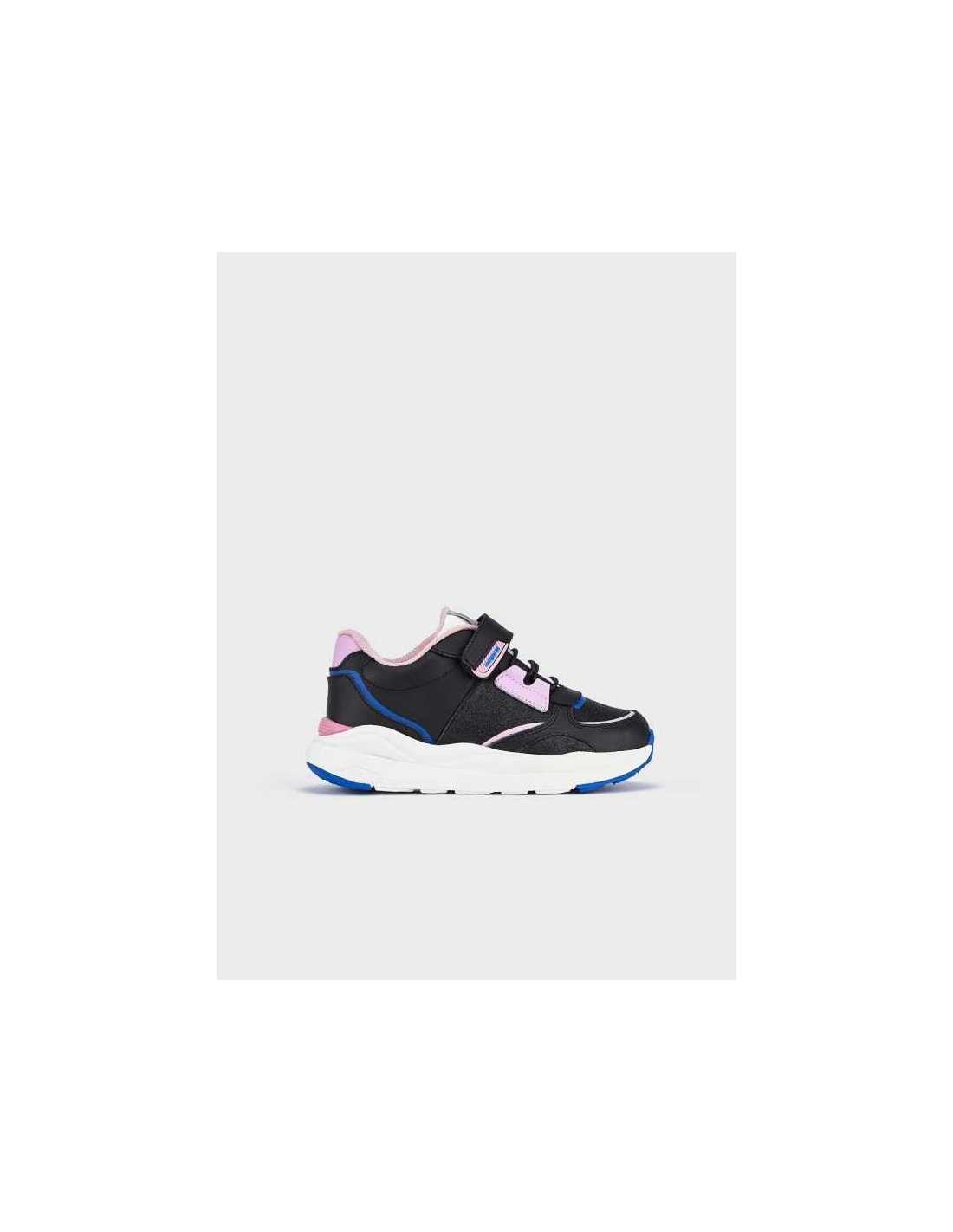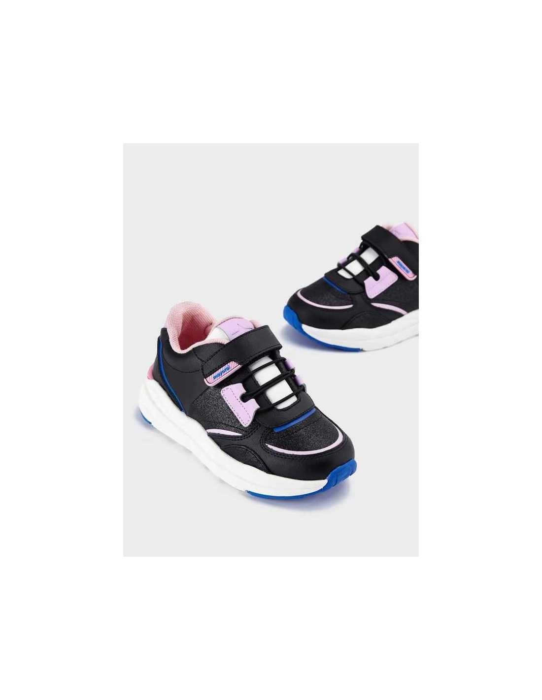 Zapatillas deportivas para niña, de gran versatilidad para sus aventuras diarias. Cierre con velcro ajustable que garantiza una perfecta sujeción del pie. Cordones elásticos decorativos.