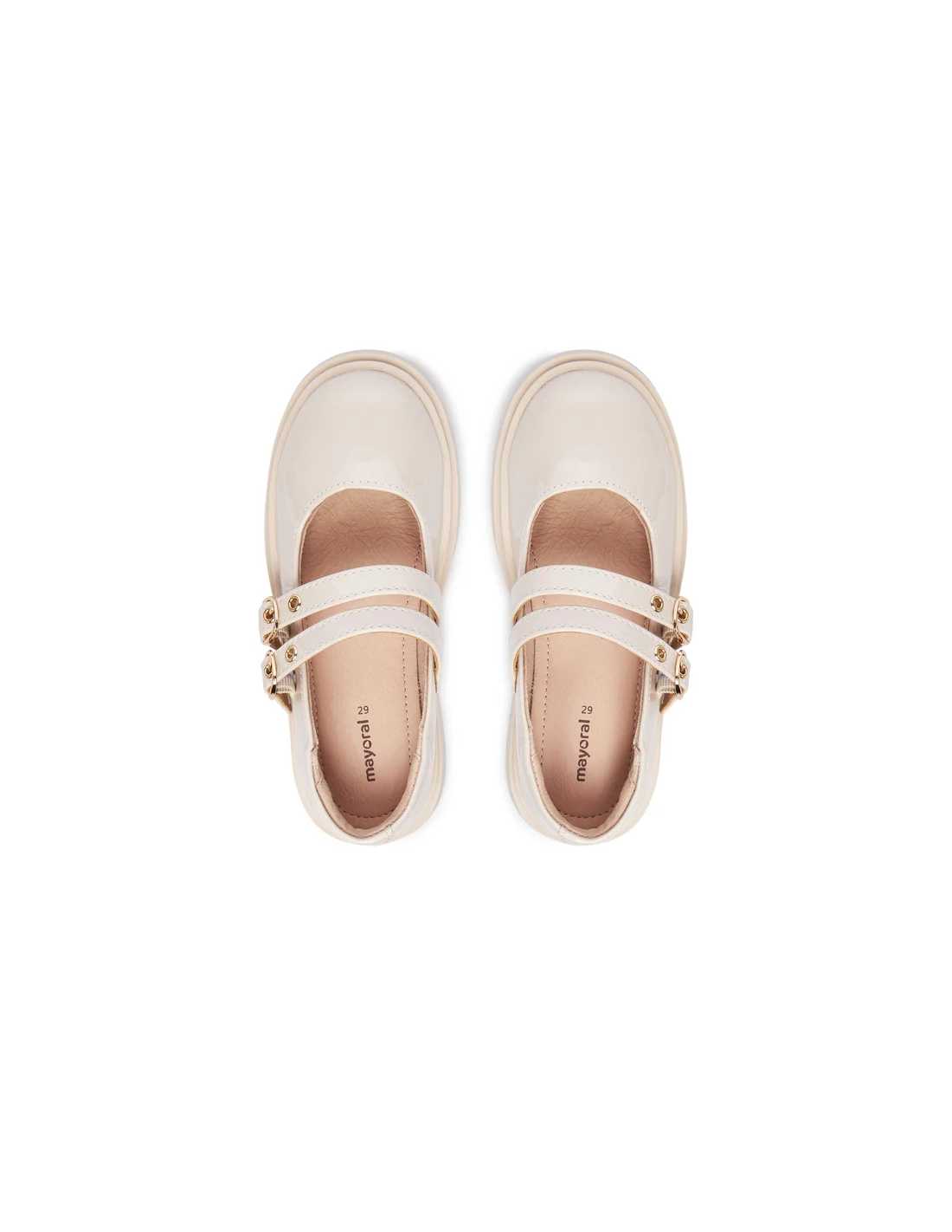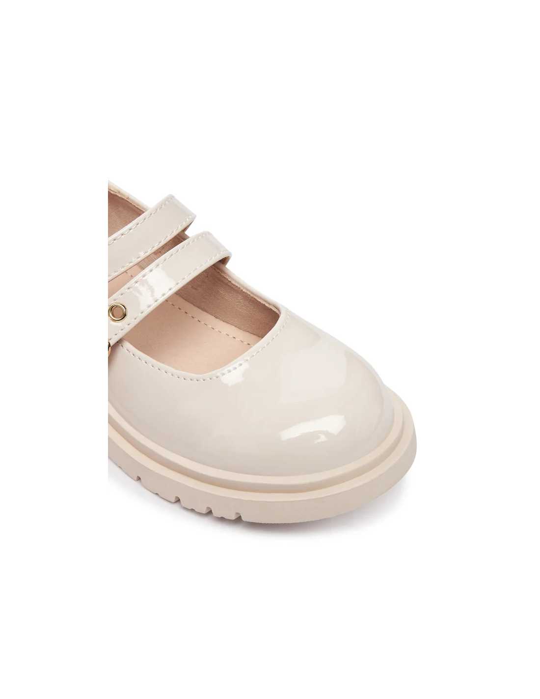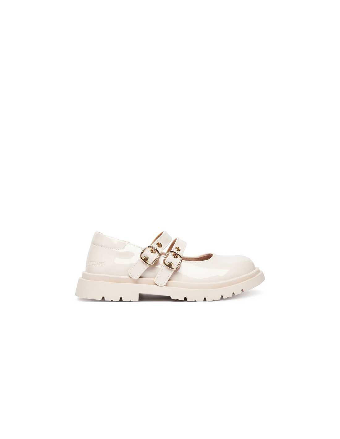 Zapatillas de tipo merceditas para niña, que aportarán un toque actual y divertido a su look. Material exterior efecto piel. Forro interior combinado de material textil y piel. Suela dentada caucho ligera y flexible. Cierre con doble hebilla ajustable para asegurar una adecuada sujeción del calzado