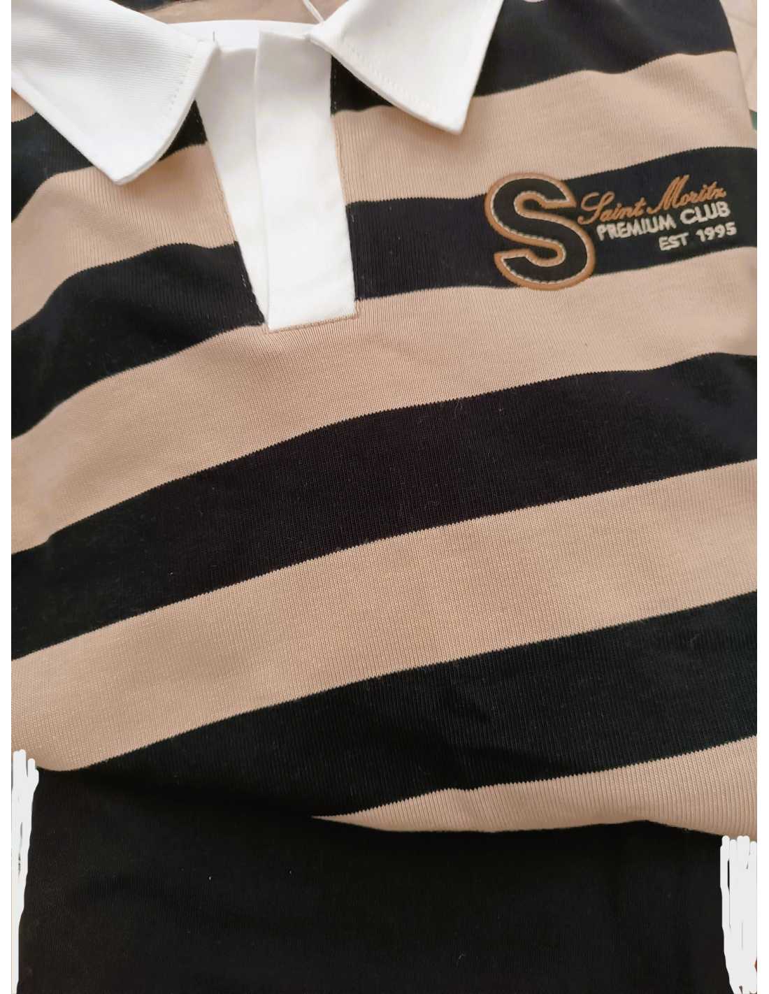 Polo de líneas relajadas para chica. Cuello de polo clásico. Elementos de adorno: bordado. Motivo de rayas.