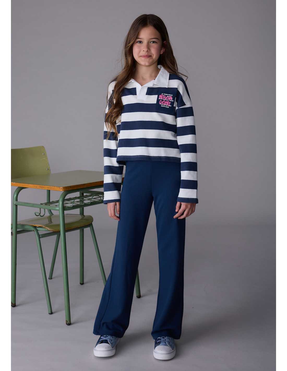 Conjunto pantalón y polo de rayas chica