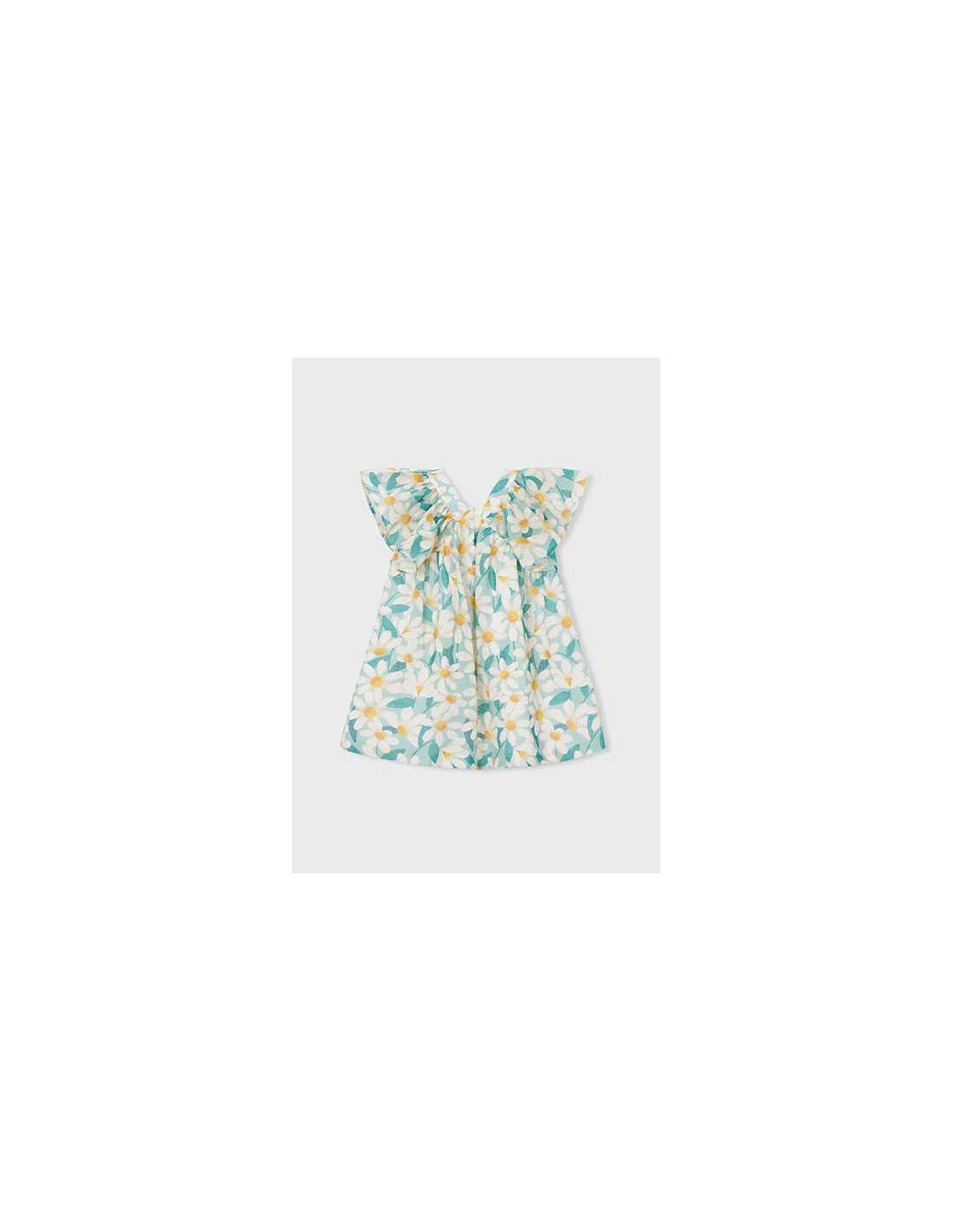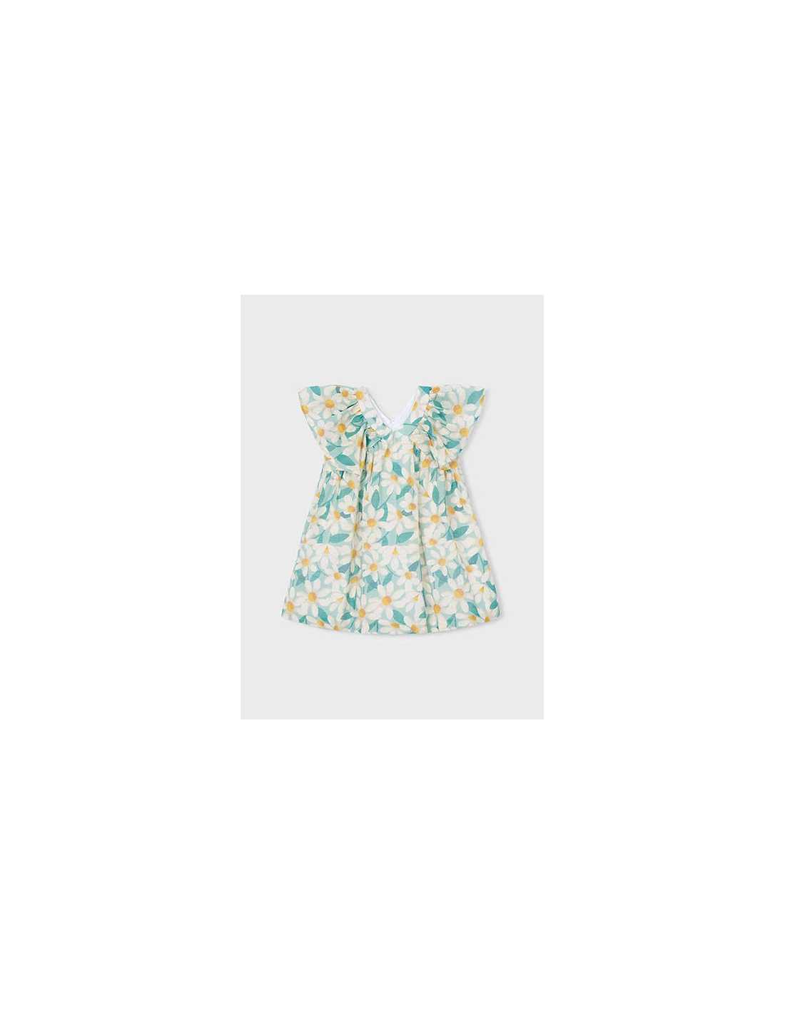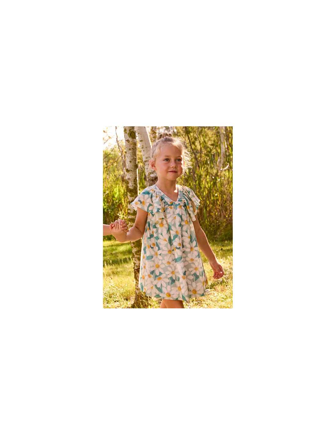 Vestido de flores para niña. Mangas con volantes. Confeccionado en 100% algodón. Diseño con estampado de flores. Apertura en la espalda con botón oculto. Este exclusivo artículo pertenece a la colección de Ceremonia y ha sido diseñado para celebraciones, eventos y ocasiones especiales. Disponible en la talla desde los 2 a los 10 años..