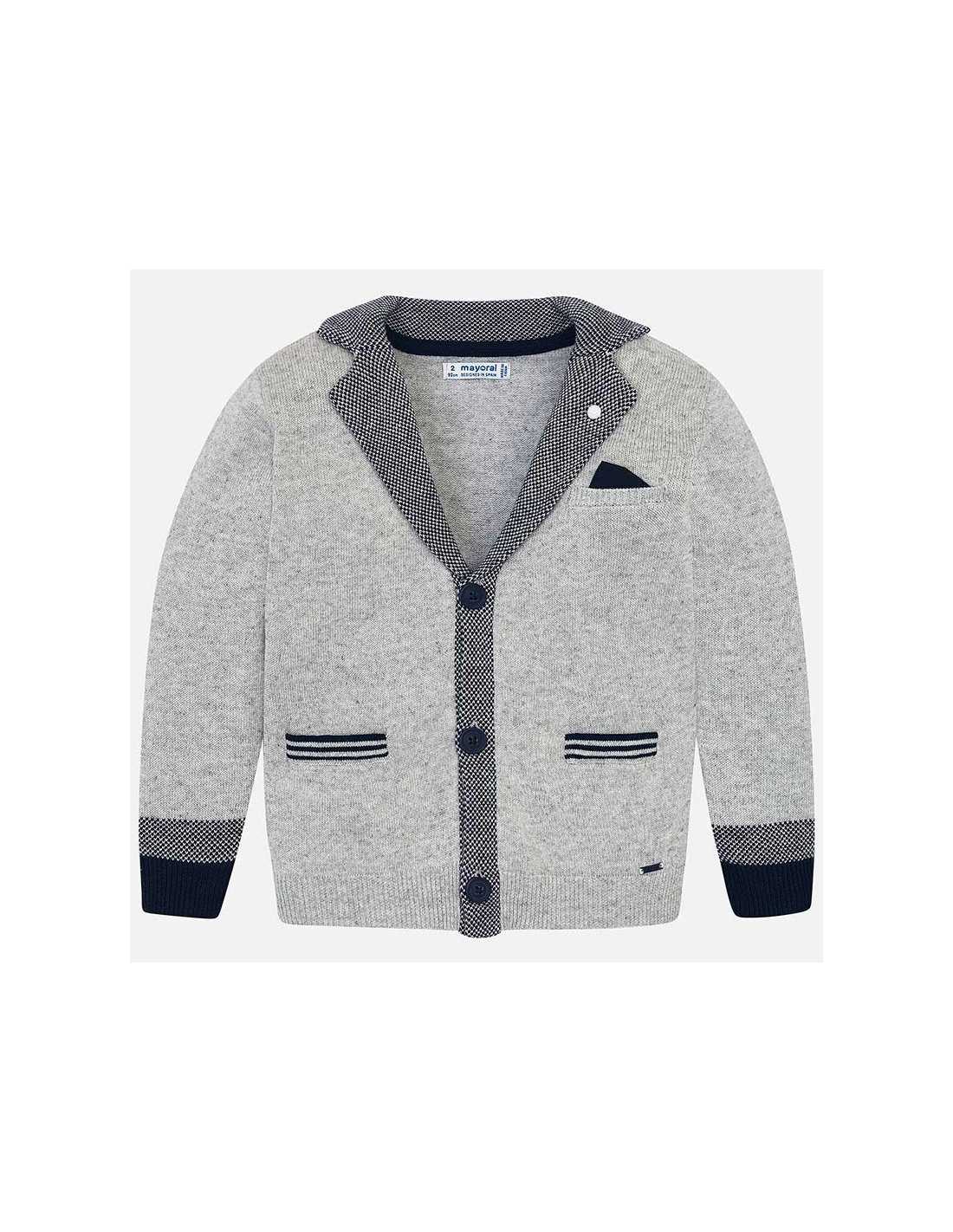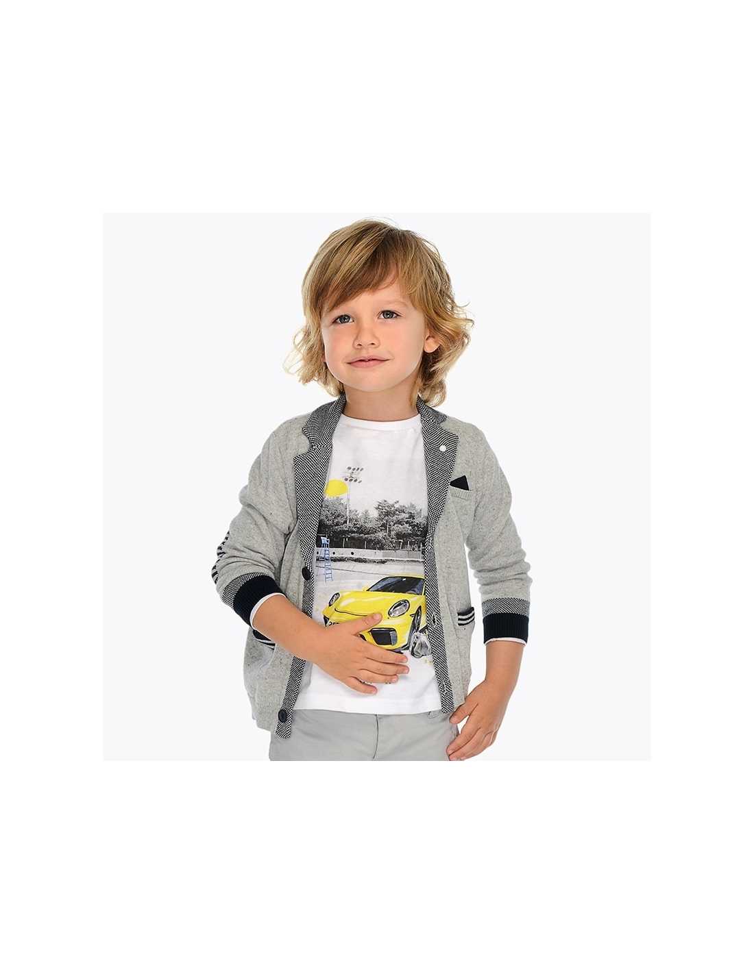 Chaqueta de manga larga para niño con puños elásticos a contraste. Modelo con cuello de pico con detalles a contraste. Cierre con botones. Tejido 100% algodón. Bajo con detalles de color a contraste. Bolsillos delanteros decorativos simulados. Elementos de adorno: parches decorativos. Diseño liso.