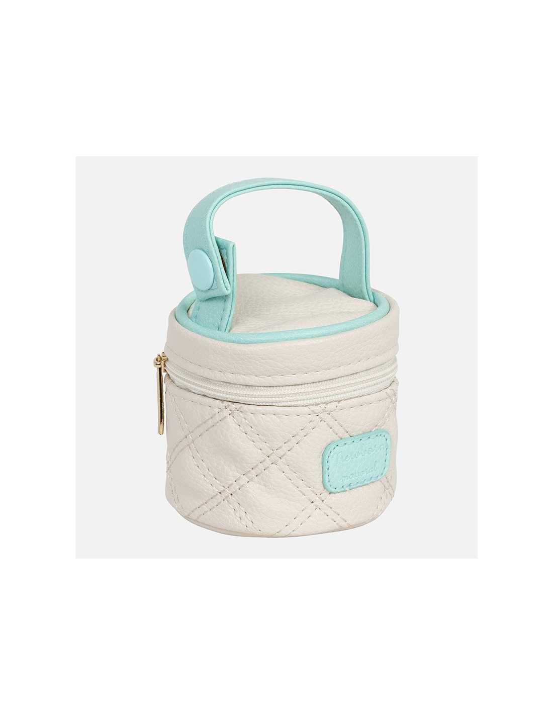 Portachupetes para bebé de diseño funcional, para guardar este accesorio fácilmente y tenerlo siempre a mano. Moderno exterior de polipiel. Elementos de adorno: logotipo decorativo.