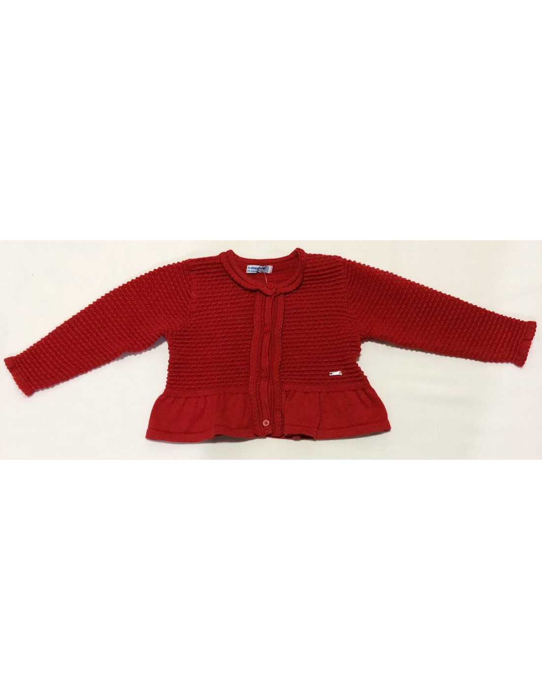 Rebeca de manga larga para bebé niña de 6 a 36 meses. Cuello redondo. Cierre con botones. Tejido de punto tricotosa fino de tacto suave y agradable. Diseño con volantes decorativos en el bajo de la prenda.