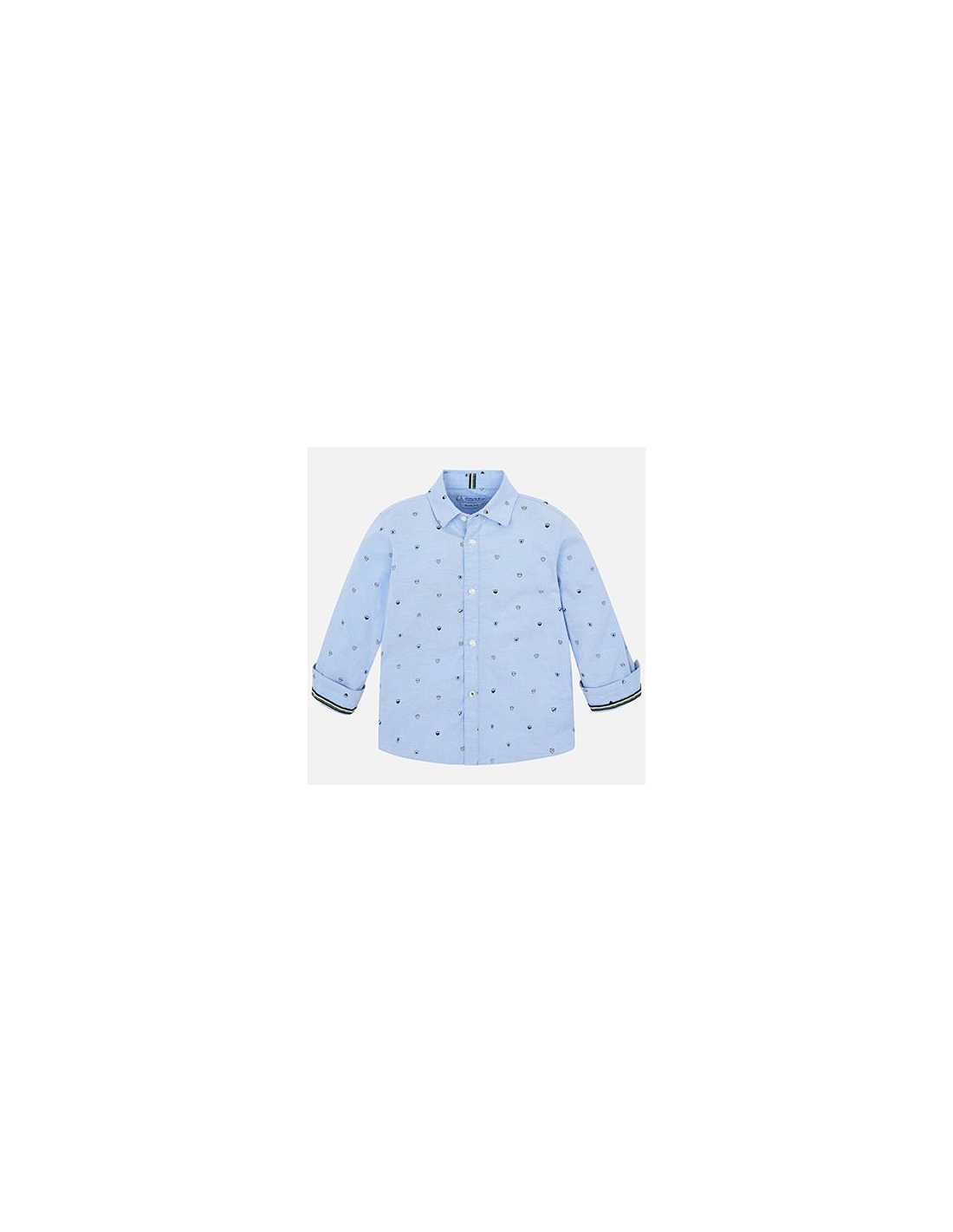 Camisa de manga larga para niño con puños abotonados. Cuello camisero. Cierre con botones en la parte delantera. Clásico y versátil tejido oxford. Diseño estampado.