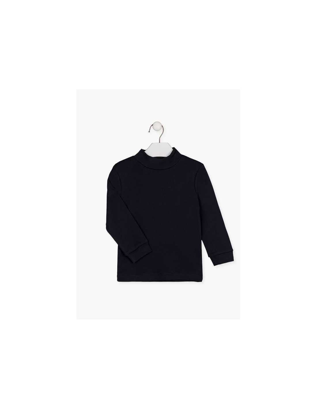 Camiseta básica cuello semicisne de algodón para niño. Camiseta básica colección esencial de manga larga cuello semicisne de algodón con corte en puños. Disponible en varios colores.