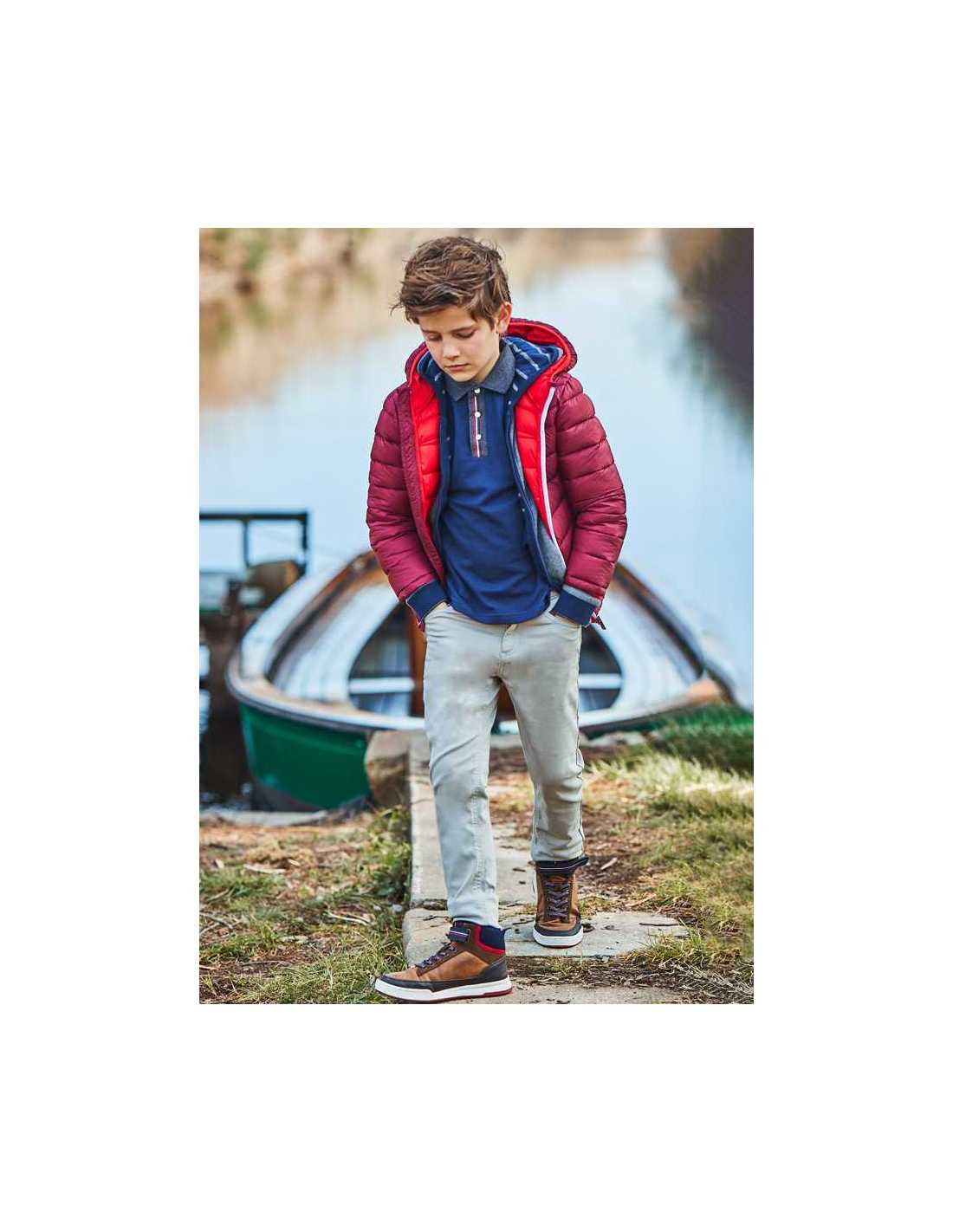 La prenda ECOFRIENDS contiene un pantalón slim fit de algodón orgánico para niño mayor de 8 a 16 años que se ajusta bien a la figura. Cremallera y botón para abrochar. Cinturilla elástica ajustable para adaptarse perfectamente a la cintura. Confeccionado en suave tejido de algodón elástico. Este artículo tiene un tinte especial lo que significa que su acabado puede no ser uniforme o que el color puede variar con los lavados.
