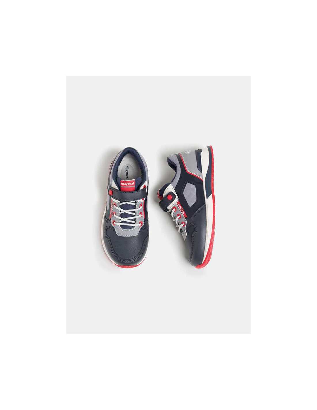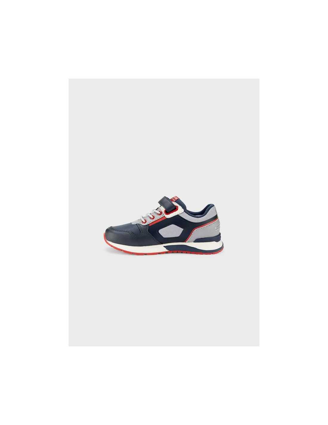 Zapatilla deportiva y polivalente para Niño. Zapatos  forro interior y plantilla de algodón transpirable. Confort deportivo: la plantilla extraíble antibacteriana y antiolor garantiza mayor transpirabilidad. Material exterior confeccionado con piel y materiales a contraste. Suela de goma flexible y antideslizante. Correa de velcro ajustable. Talón con inserto de goma. durabilidad del zapato.