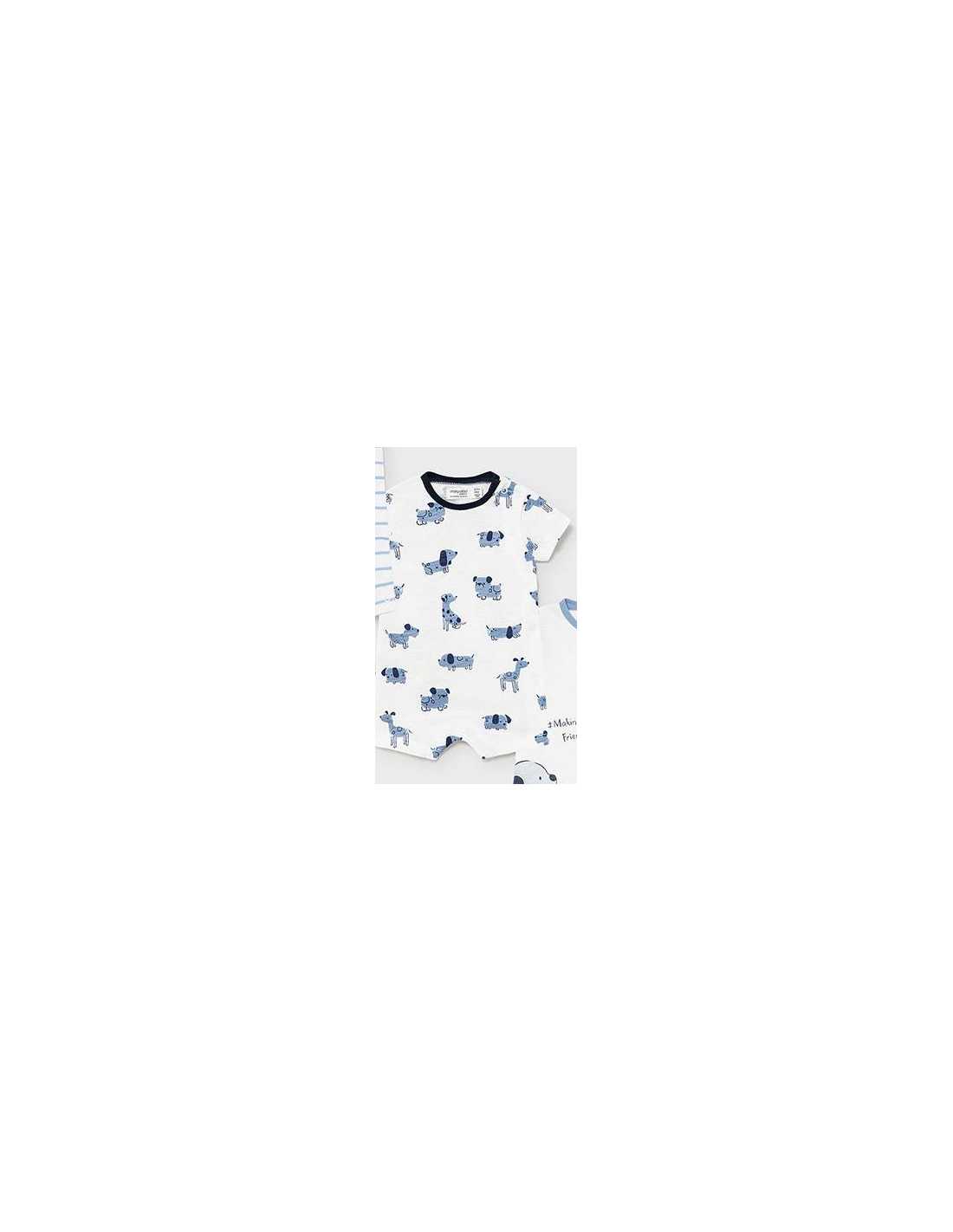 Pijamas de manga corta para recién nacido niño. Cuello redondo en distinto color. Cierre con botones a presión. Diseño estampado.