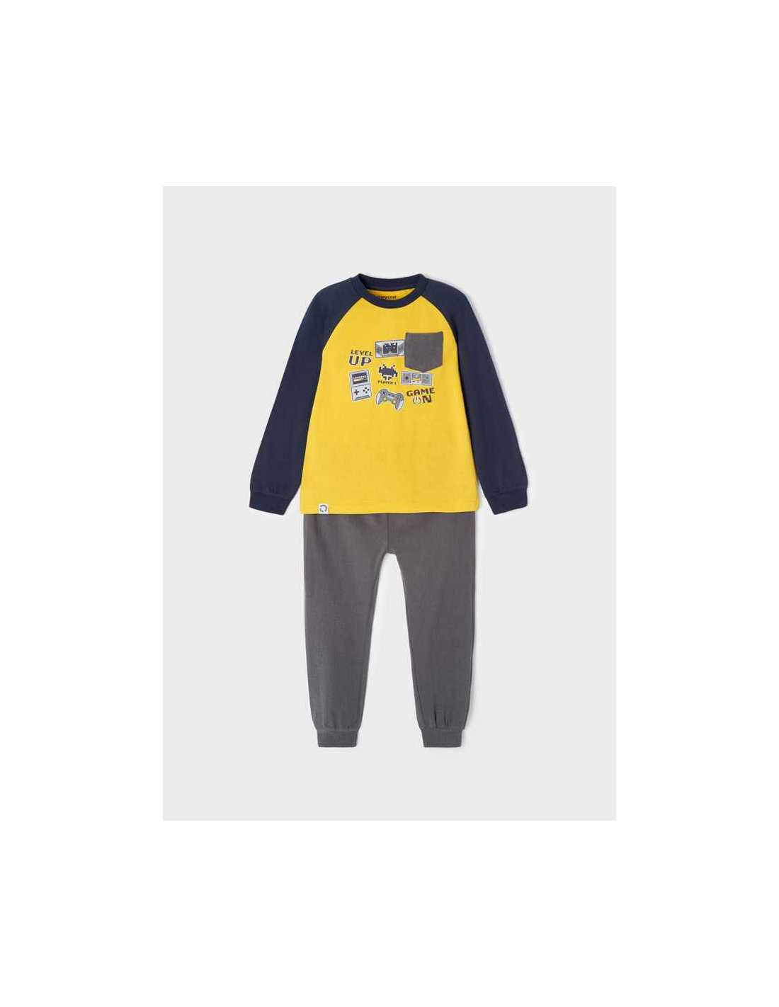Pijama de dos piezas para niño con camiseta y pantalón largo de punto suave y cómodo.