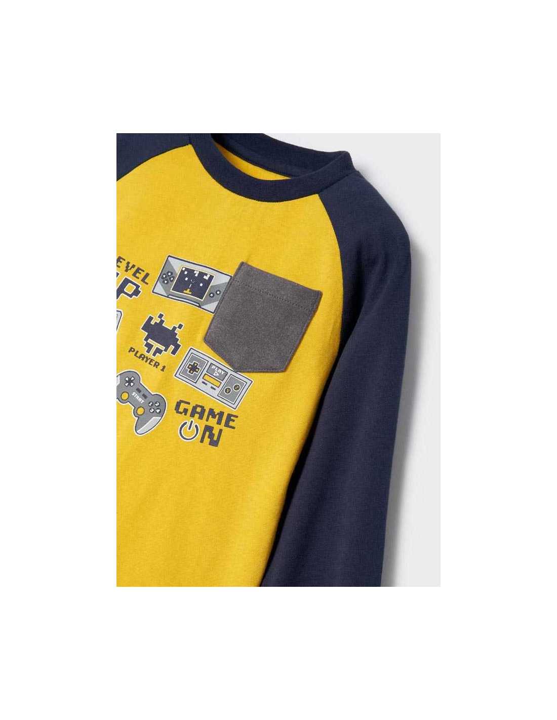 Camiseta de manga larga para niño. Cuello redondo. Motivo PLAY WITH brillo en la oscuridad.