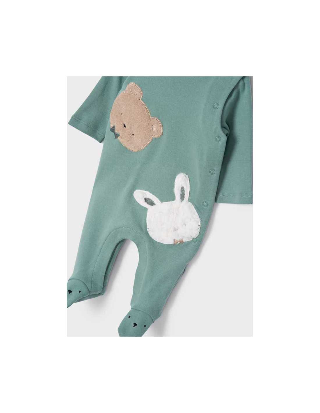 Pijama manga larga para recién nacido. Diseño liso. Las tallas mayores de este modelo (12 y 18 meses) presentan una suela antideslizante.