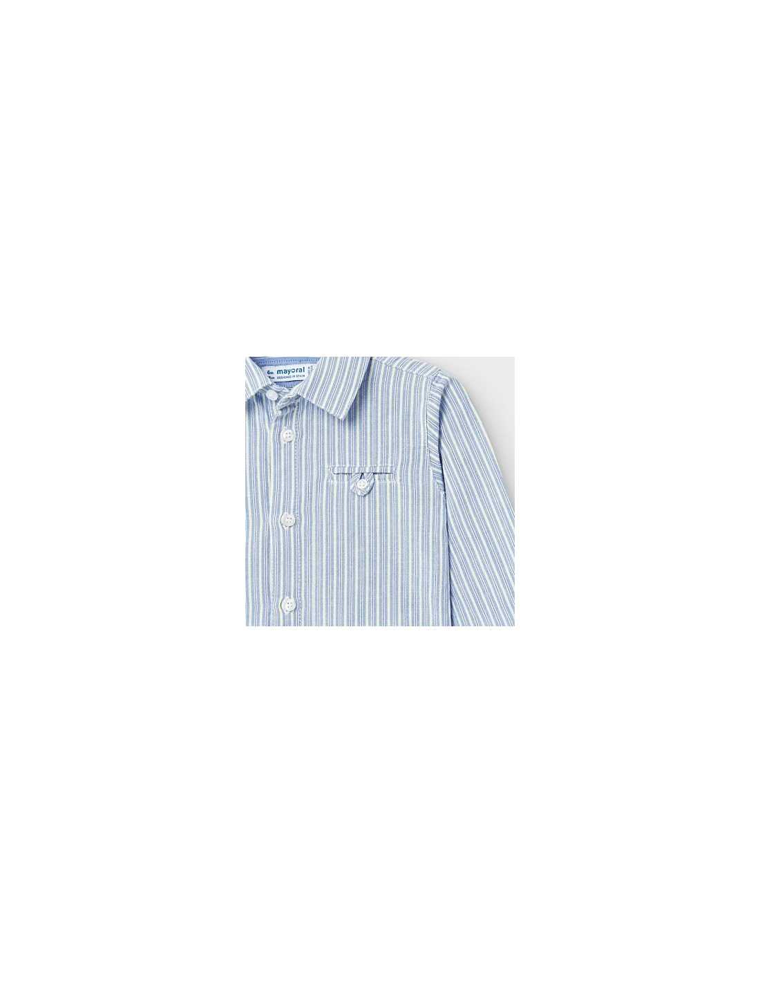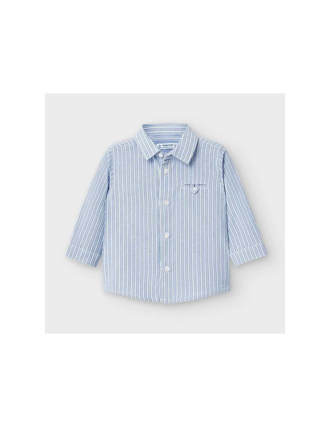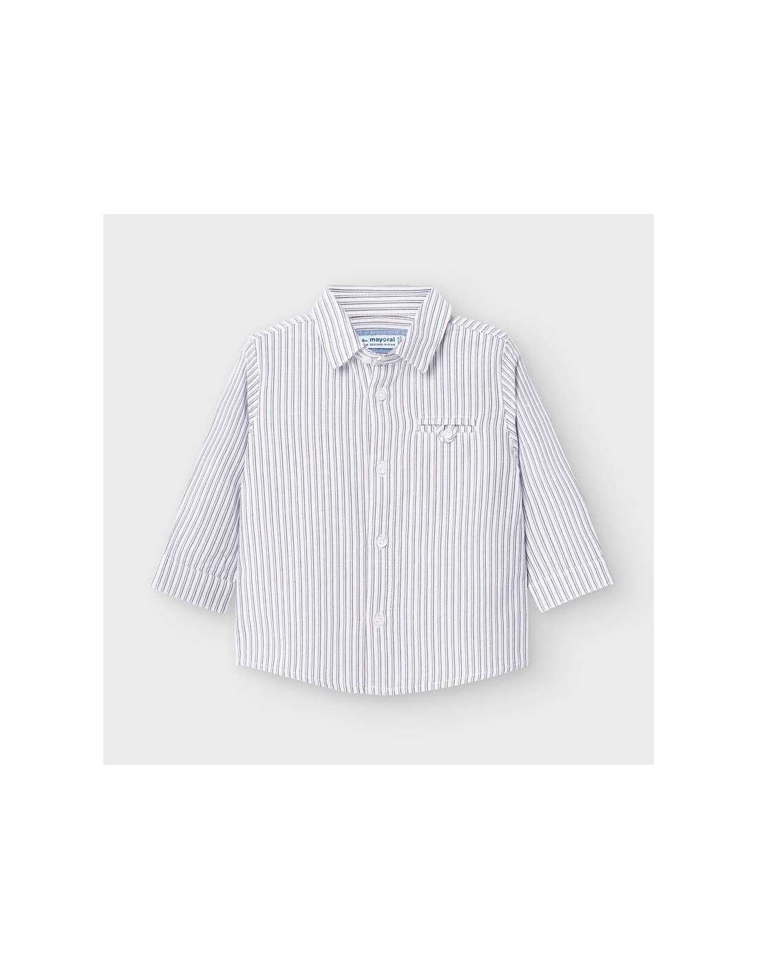 Camisa de manga larga para bebé niño de 6 a 36 meses, con puños abotonados. Cuello camisero. Tejido 100% algodón. Motivo de rayas.