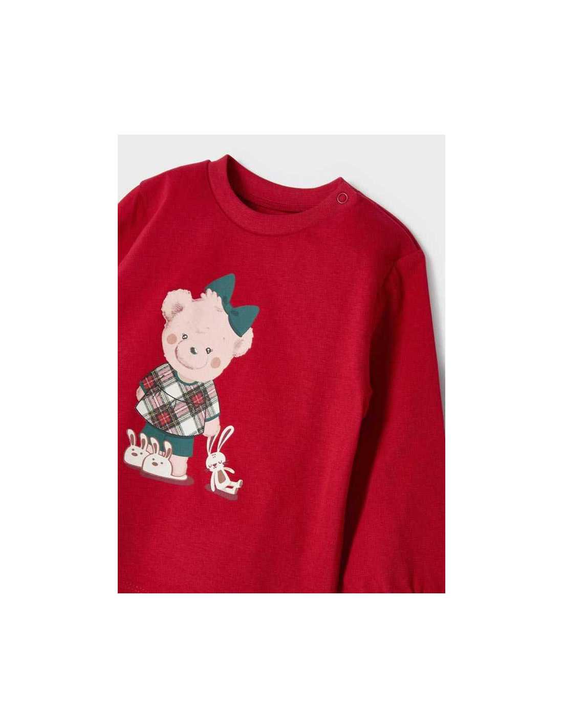 Camiseta de manga larga para bebé. Cierre con botones a presión en el hombro para facilitar la puesta de la prenda.