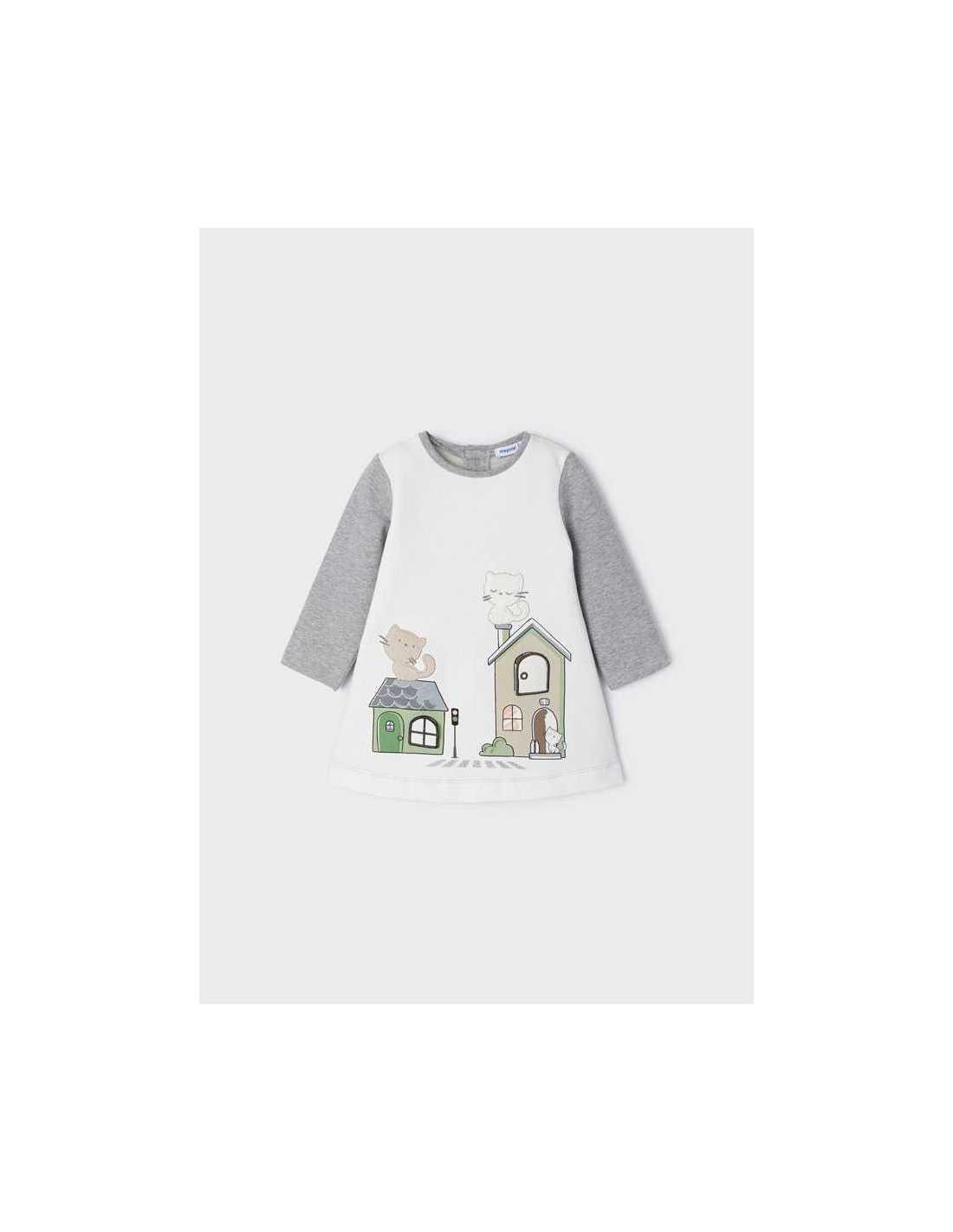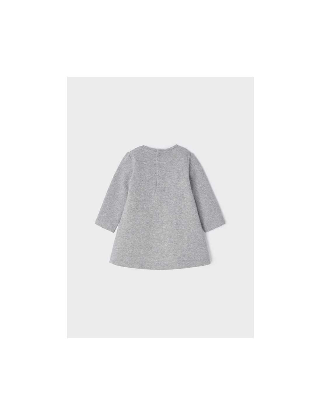 Prenda ECOFRIENDS, contiene algodón sostenible. Vestido de manga larga para bebé. Cierre con botones a presión en la parte posterior para facilitar la puesta de la prenda.