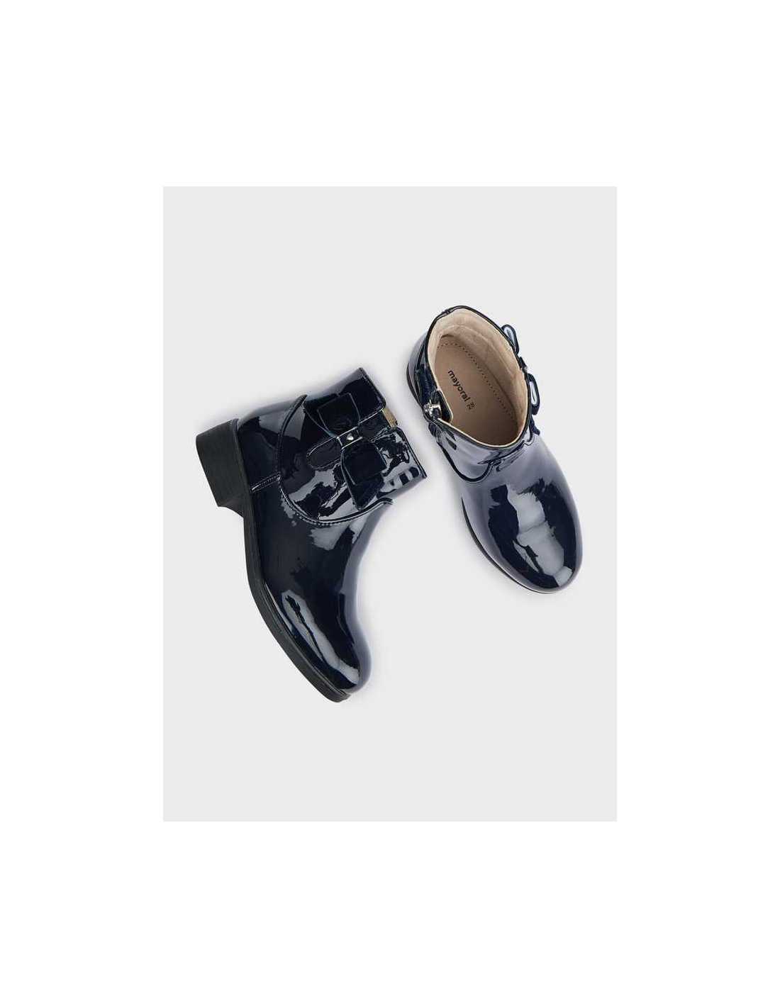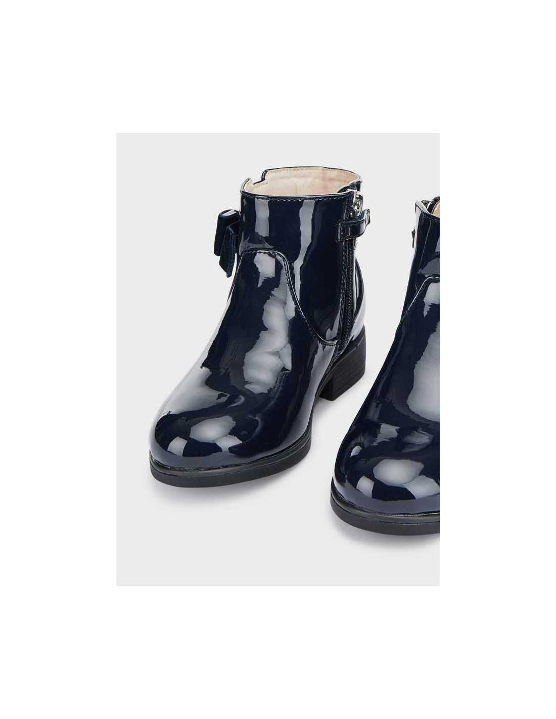 Botas de caña media para niña, muy prácticas para proteger sus pies en los momentos de frío. Material exterior con efecto charol. Plantilla de piel. Todos nuestros zapatos se realizan con pieles libres de cromo. Suela ligera y antideslizante. Cierre con cremallera lateral para una puesta rápida y sencilla. Este modelo también está disponible en las tallas 26 a 30 y en las tallas 36 a 38.