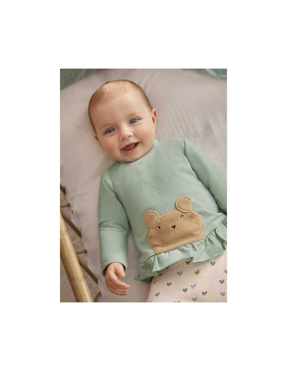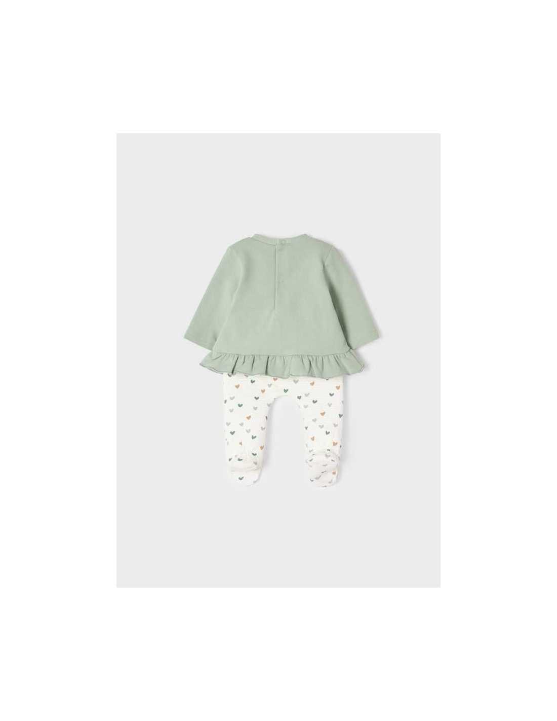 Prenda ECOFRIEND 100% algodón sostenible. Este conjunto de dos piezas para recién nacido incluye una camiseta de manga larga con polaina a juego.
