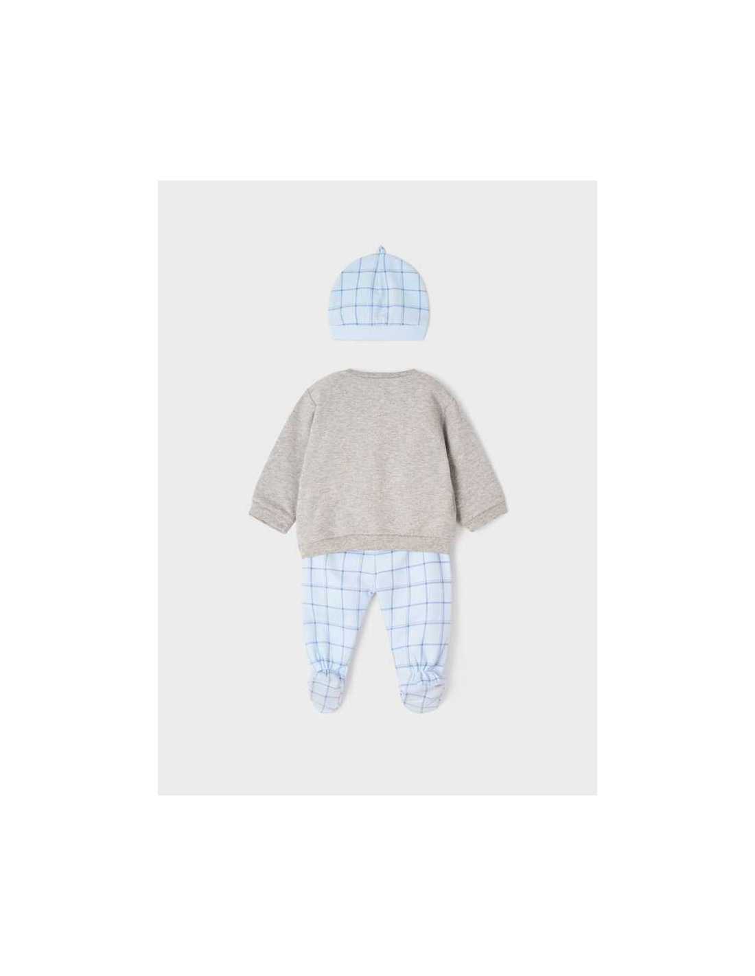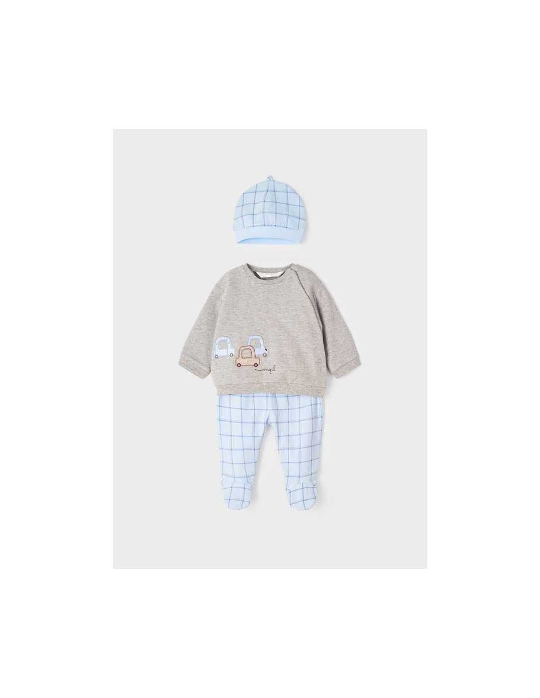 Prenda ECOFRIENDS, contiene algodón sostenible. Original conjunto de tres piezas para recién nacido.