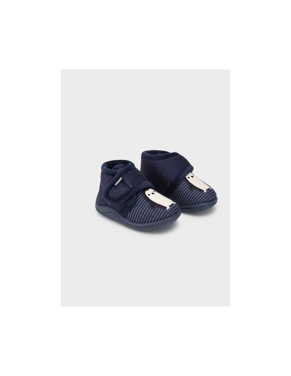 Recomendación de talla: Este modelo calza más pequeño de lo habitual. Recomendamos escoger una talla más. Cómodas zapatillas de casa para niño. Suela de goma antideslizante y flexible. Cierre con velcro ajustable que garantiza una perfecta sujeción del pie. Este modelo también está disponible en las tallas 19 a 25.