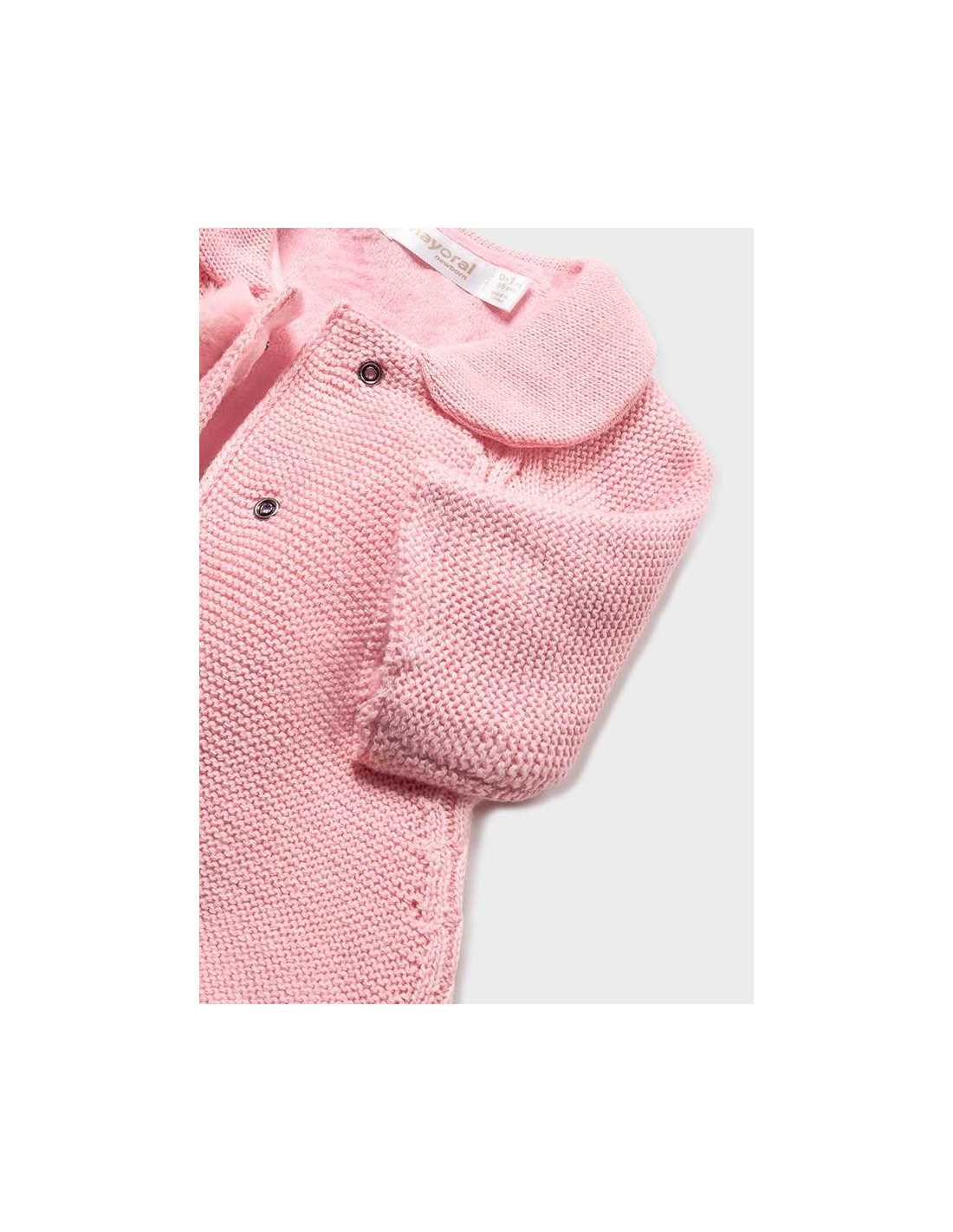 Abrigo de manga larga para recién nacido. Cierre con botones a presión ocultos que permitirán vestir la prenda con facilidad.