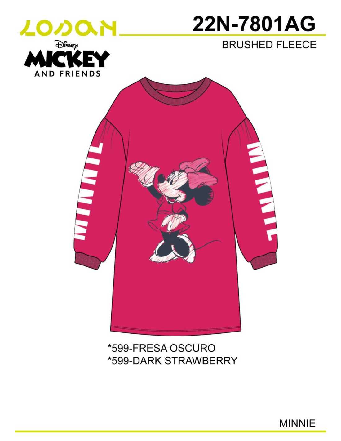 VESTIDO DE INFANTIL NIÑA DE MANGA LARGA DE FELPA PERCHADA CON PRINT MINNIE