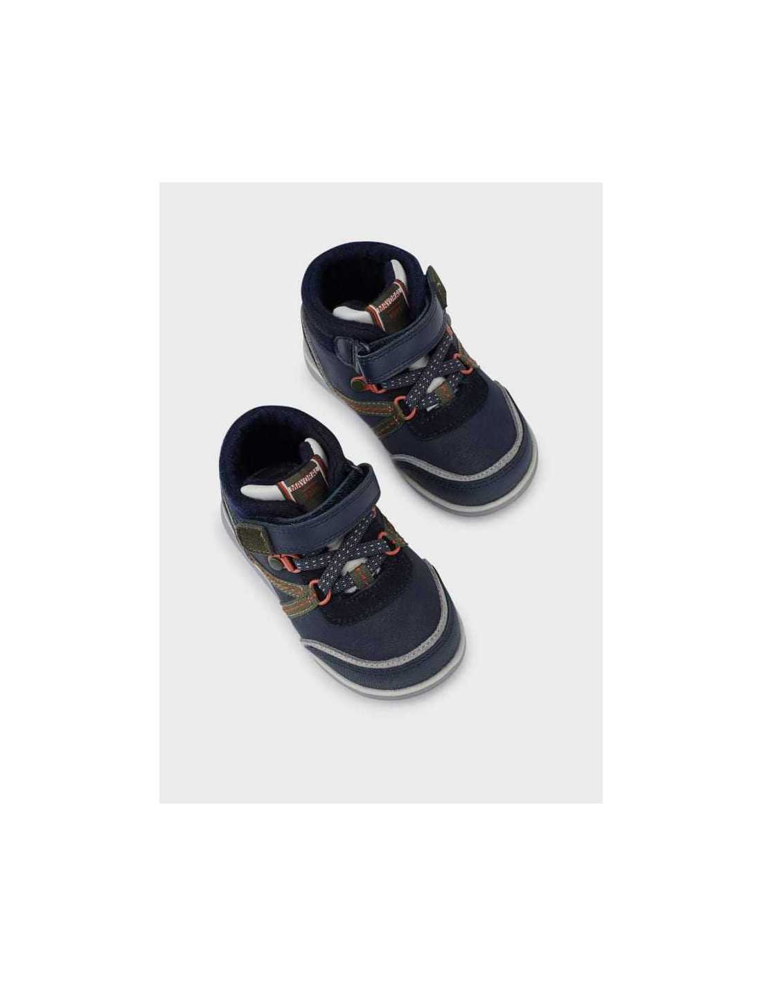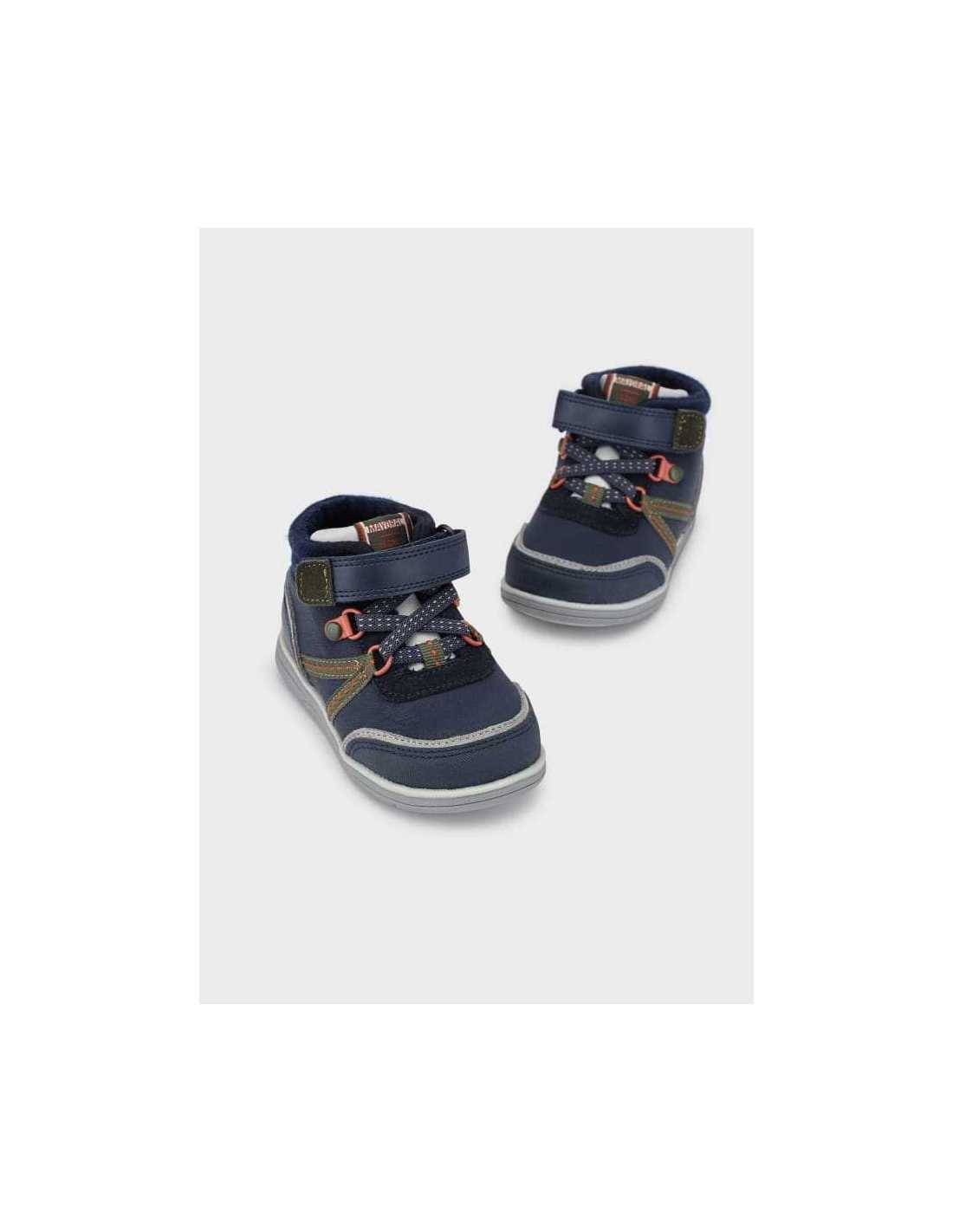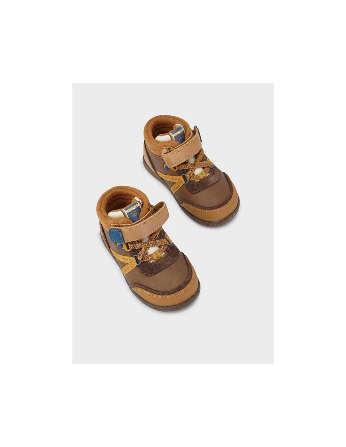 Botines infantiles para bebé imprescindibles en cualquier armario de invierno. Un zapato práctico y abrigado para los días más fríos. Material exterior combinado de piel y otros materiales. Plantilla de piel. Todos nuestros zapatos se realizan con pieles libres de cromo. Suela de goma antideslizante y flexible. Cierre con velcro ajustable que garantiza una perfecta sujeción del pie. Refuerzo de goma en la puntera para mejorar la resistencia y durabilidad del calzado. Cordones elásticos decorativos. Todos nuestros zapatos se realizan con adornos libres de sustancias químicas.