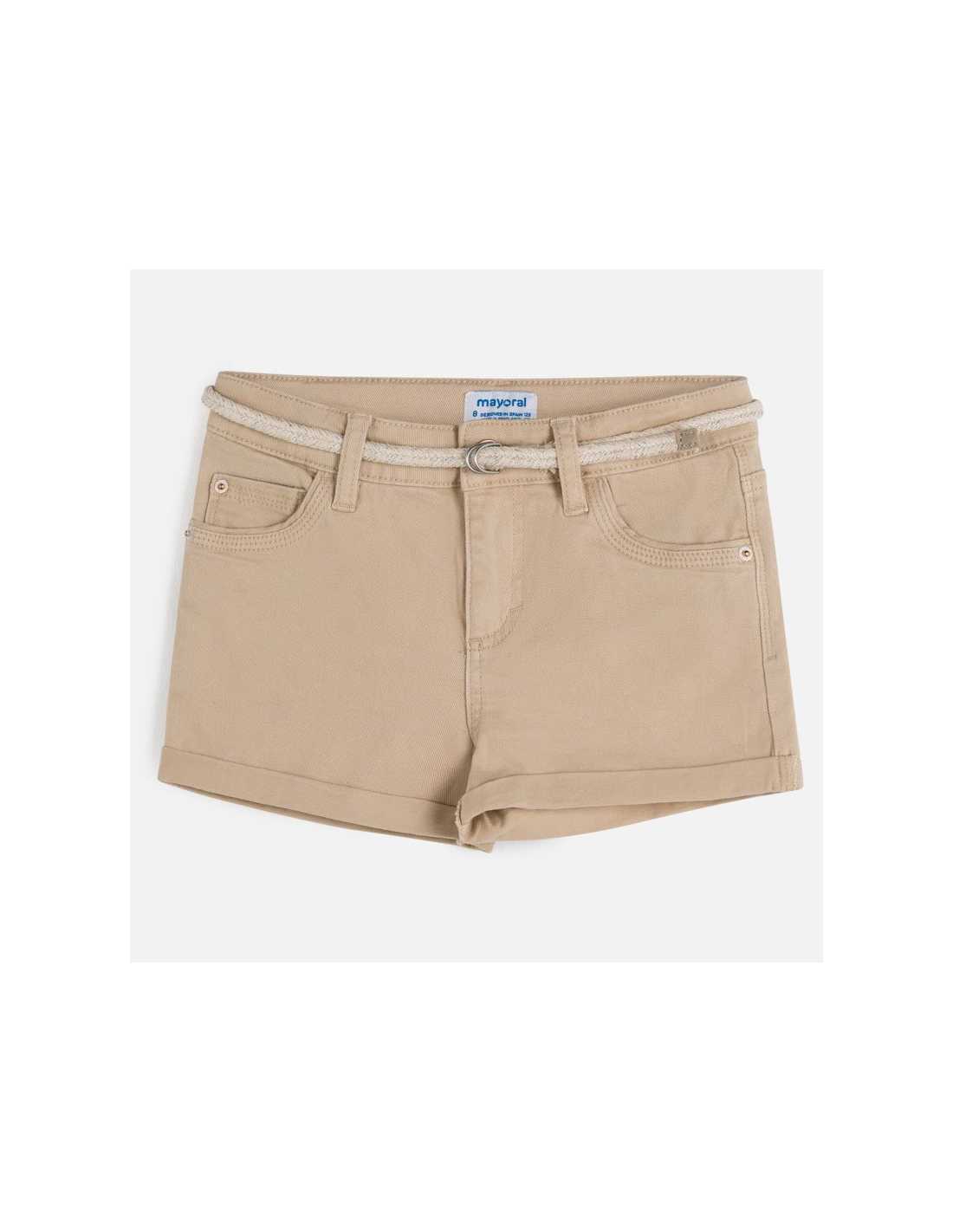 Pantalón corto de tipo short para chica. Cintura con goma elástica y cierre con botón. Cómodo tejido de sarga de gran resistencia. Detalle de bajo con vuelta. Cinturón extraíble a la cintura. Modelo con múltiples bolsillos. Diseño liso. Este artículo presenta un tintado especial que hace que su acabado pueda no ser uniforme o que el color pueda variar con los lavados.