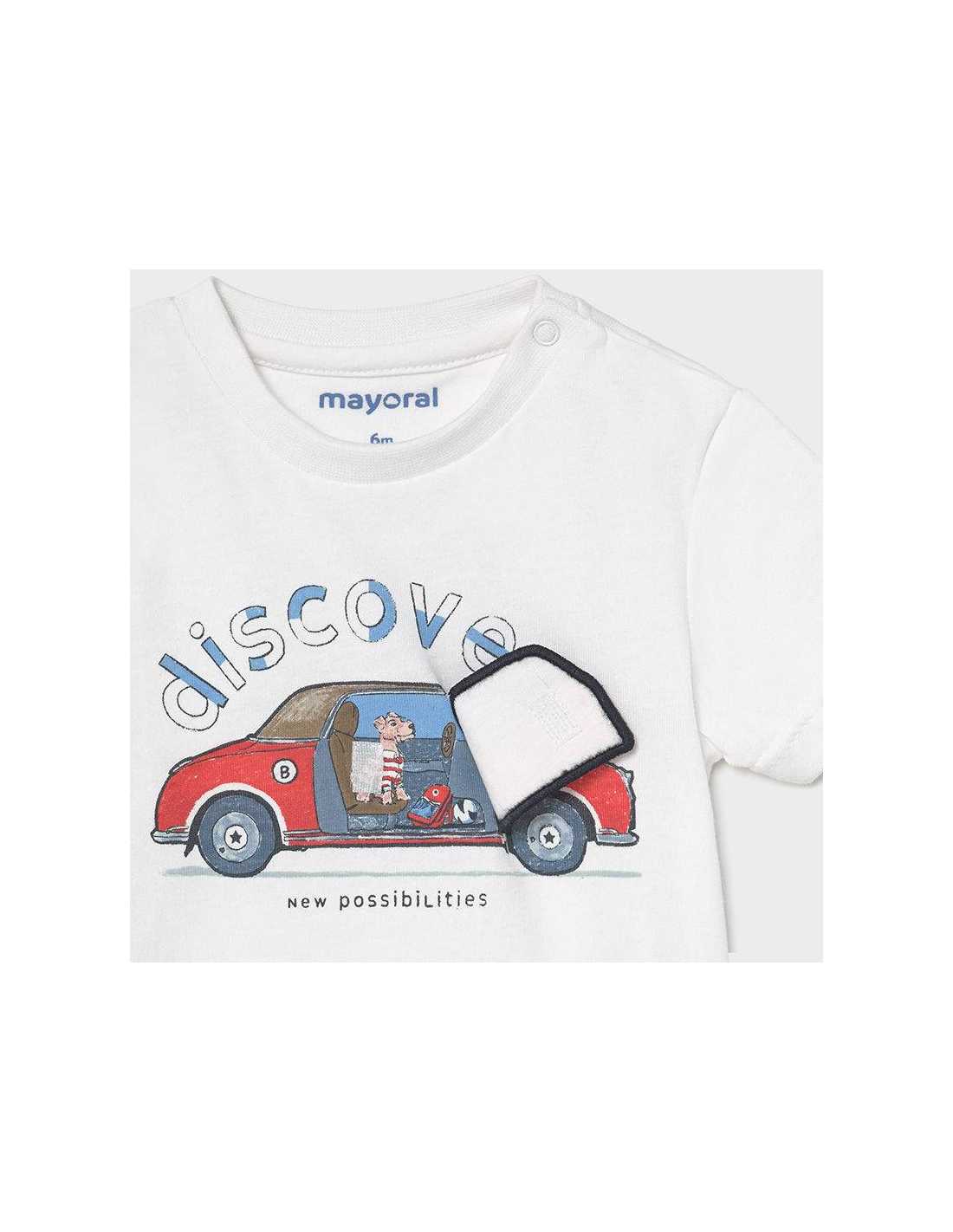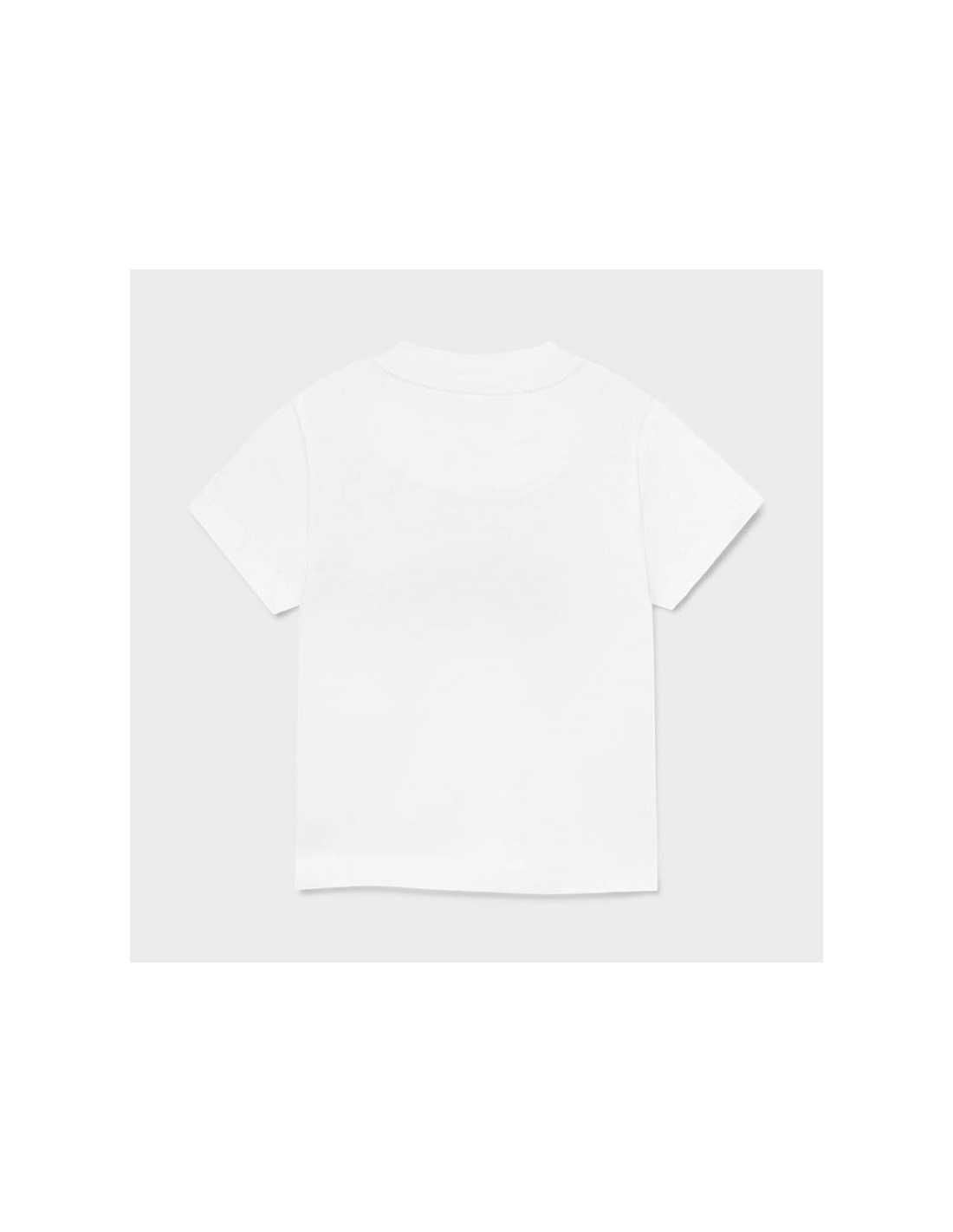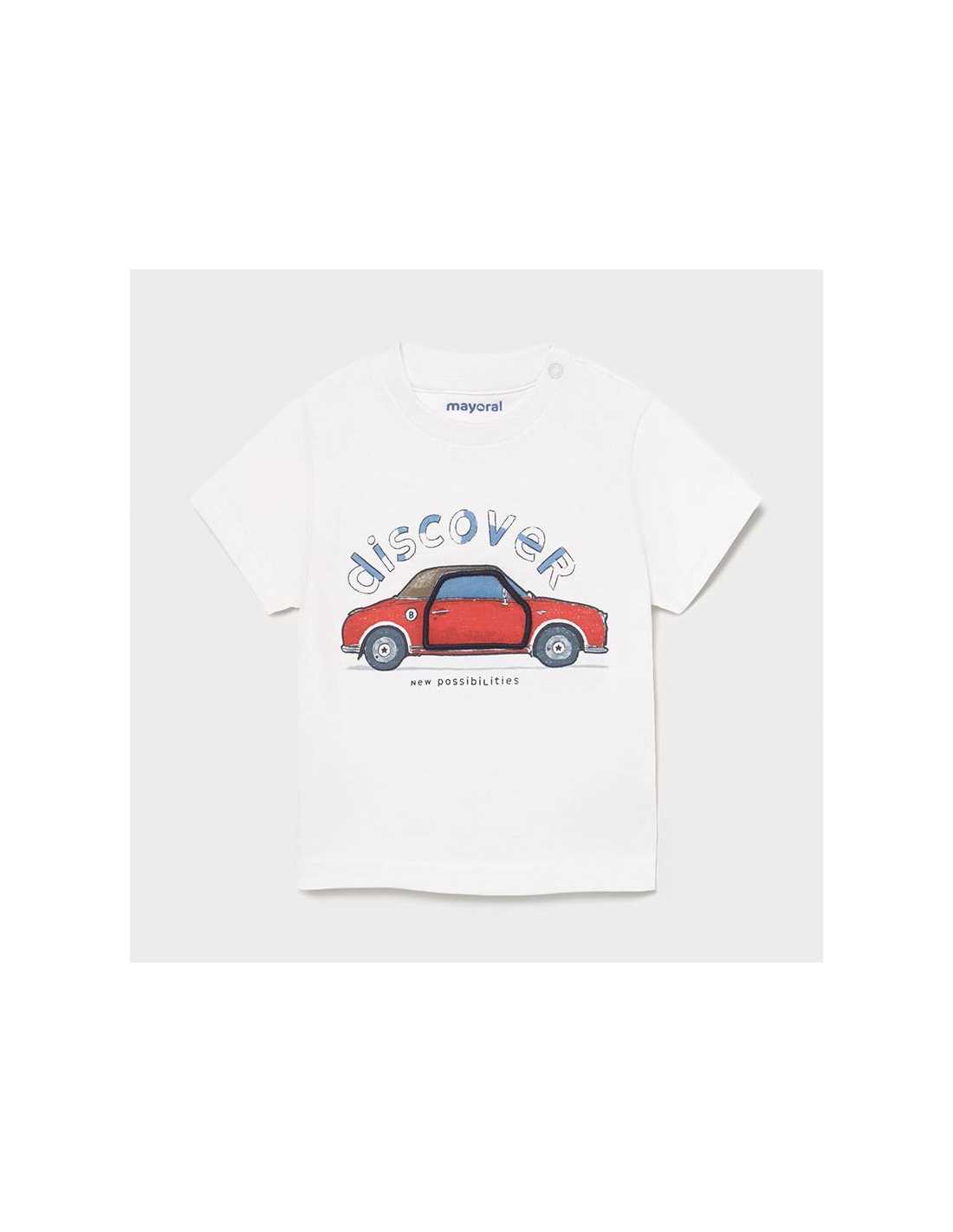 Camiseta de manga corta para bebé niño. Cuello redondo. Modelo de corte recto. Cierre con botones a presión en el hombro para facilitar la puesta de la prenda. Cómodo tejido de punto. Elementos de adorno: bordados en la parte delantera.