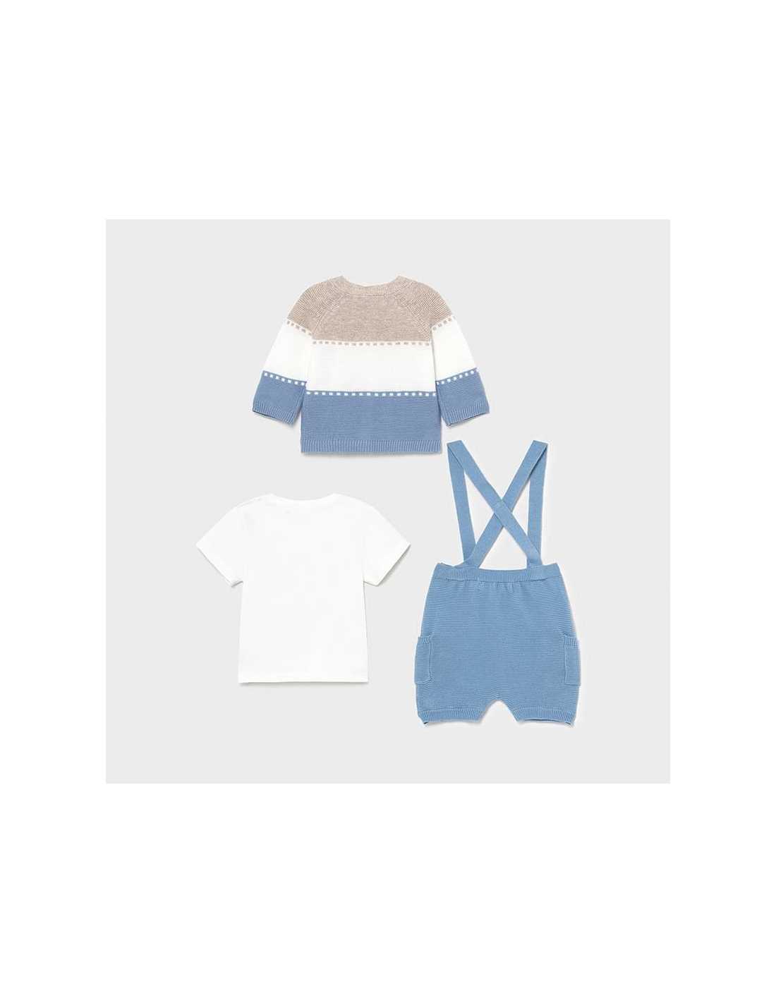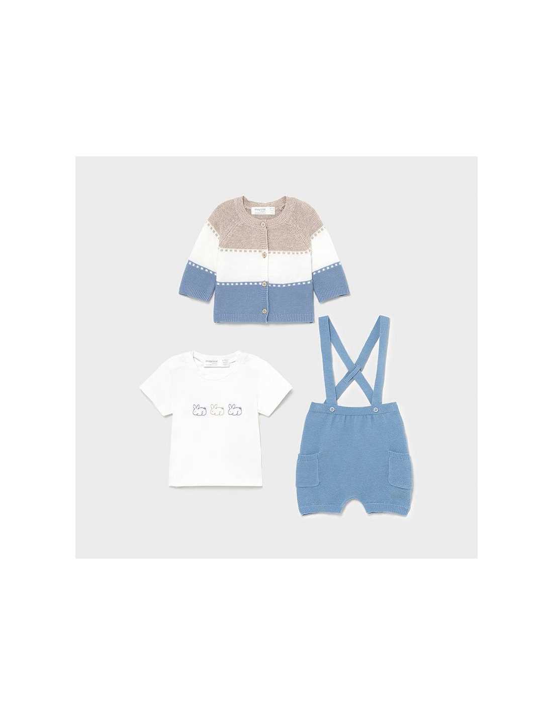 Prenda ECOFRIENDS 100% algodón orgánico. Chaqueta de tipo cardigan de manga larga para recién nacido niño. Cuello redondo. Cierre con botones en la parte delantera.