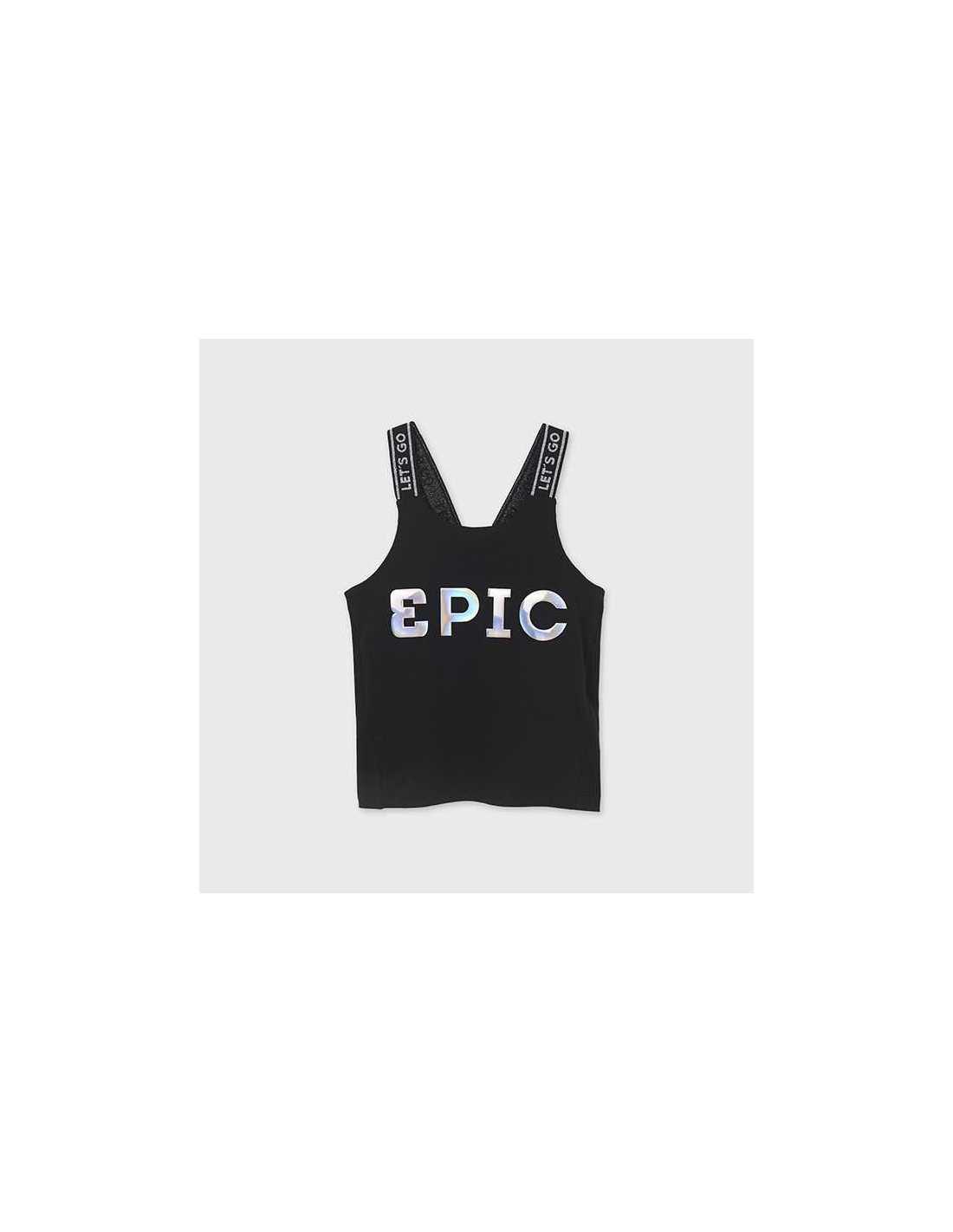 Camiseta de tirantes para chica de 8 a 16 años con detalles a contraste. Suave tejido de algodón elástico. Elementos de adorno: dibujo en la parte delantera.