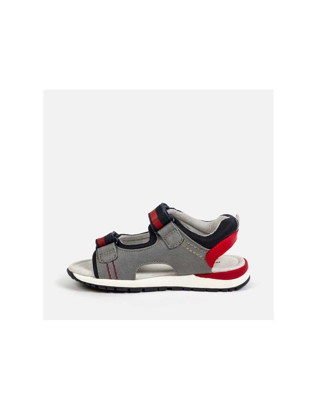 Sandalias de estilo deportivo para niño, de gran versatilidad para todas sus aventuras del día a día. Calzado con forro interior de algodón y plantilla de piel. Revestimiento exterior combinado de piel y materiales a contraste. Cómoda suela de goma extra flexible y antideslizante para un mayor confort del pie. Cierre regulable con doble velcro para una puesta rápida y un mejor ajuste.