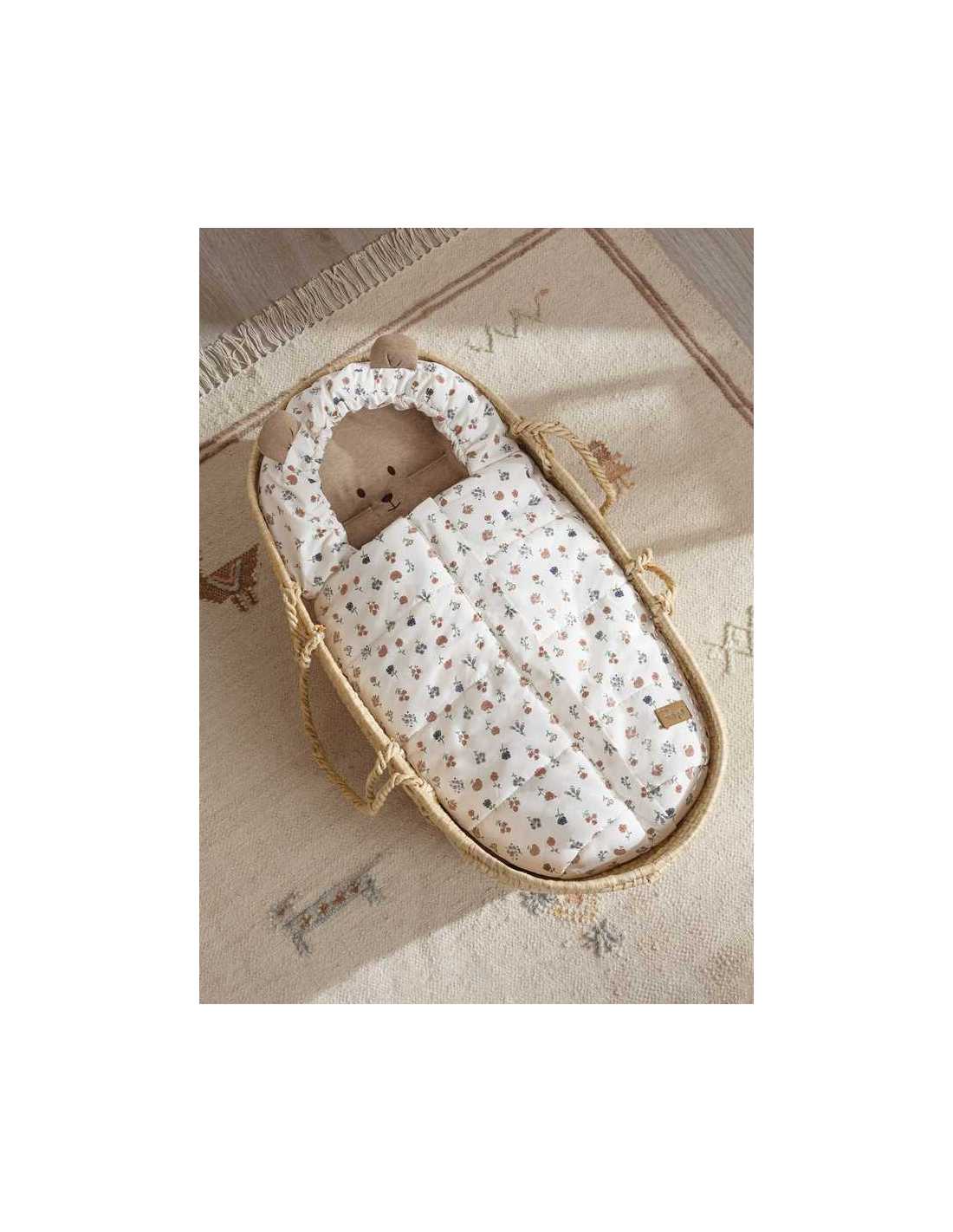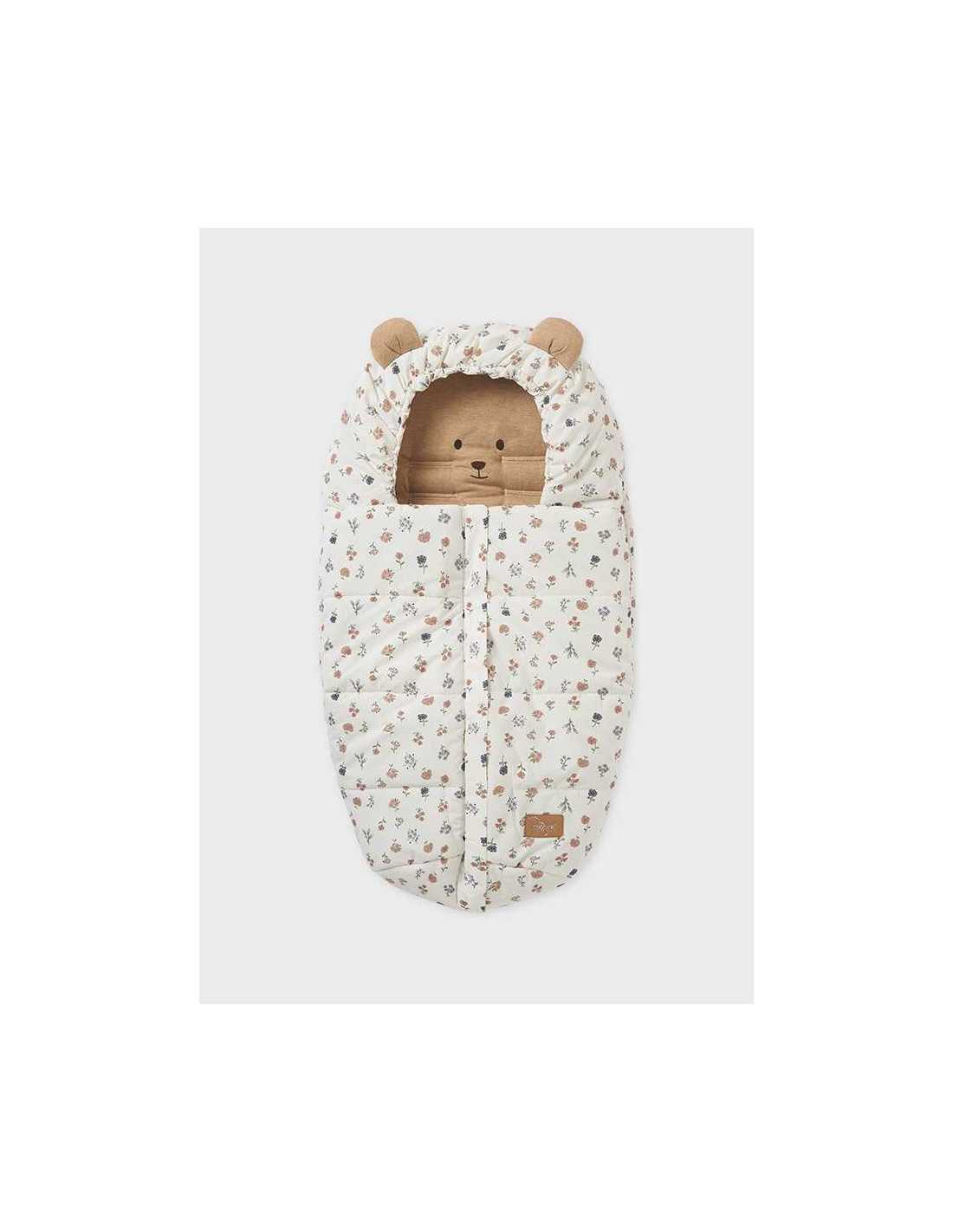 Toquilla para recién nacidos de diseño envolvente en punto suave que ofrece confort al bebé en sus momentos de descanso.