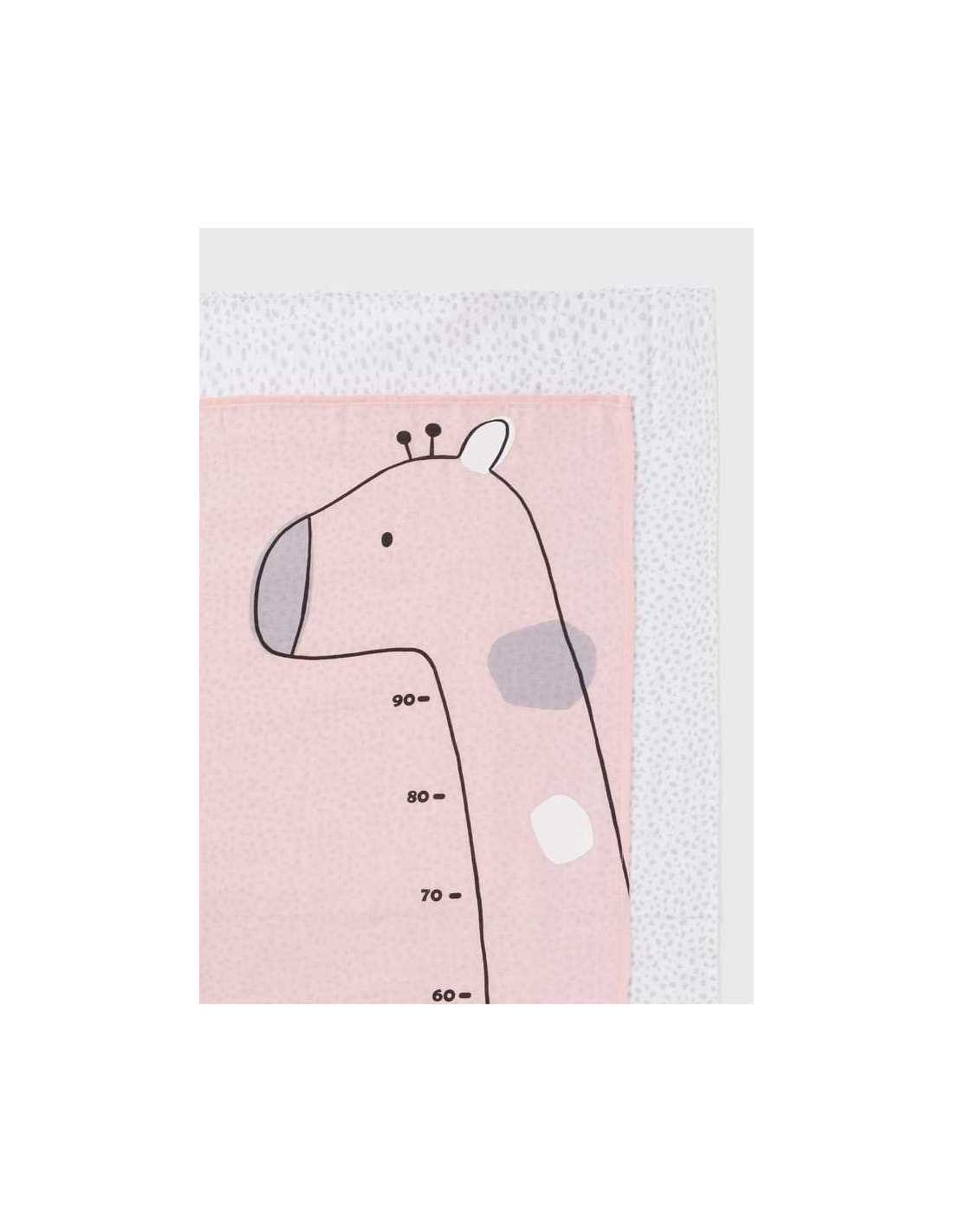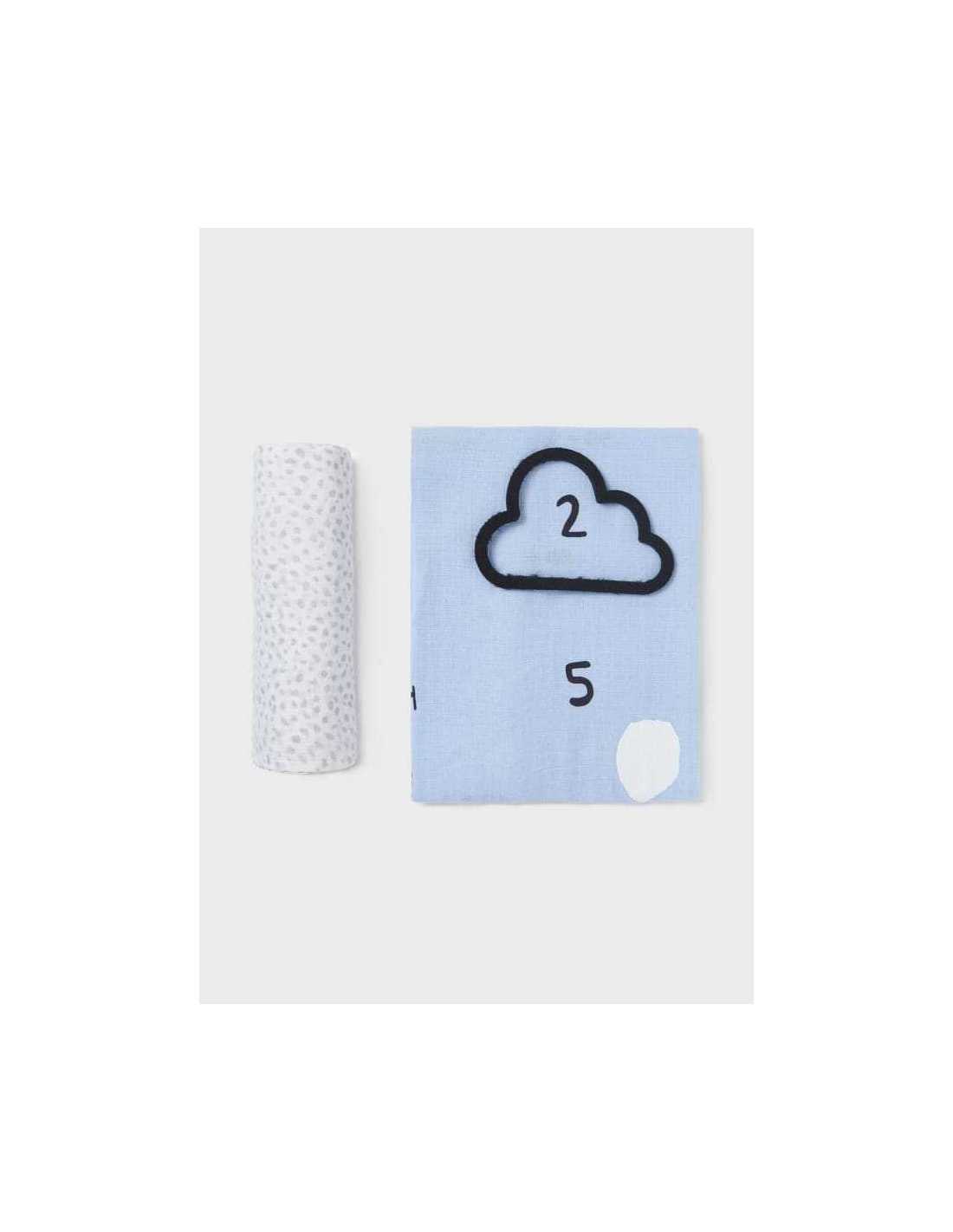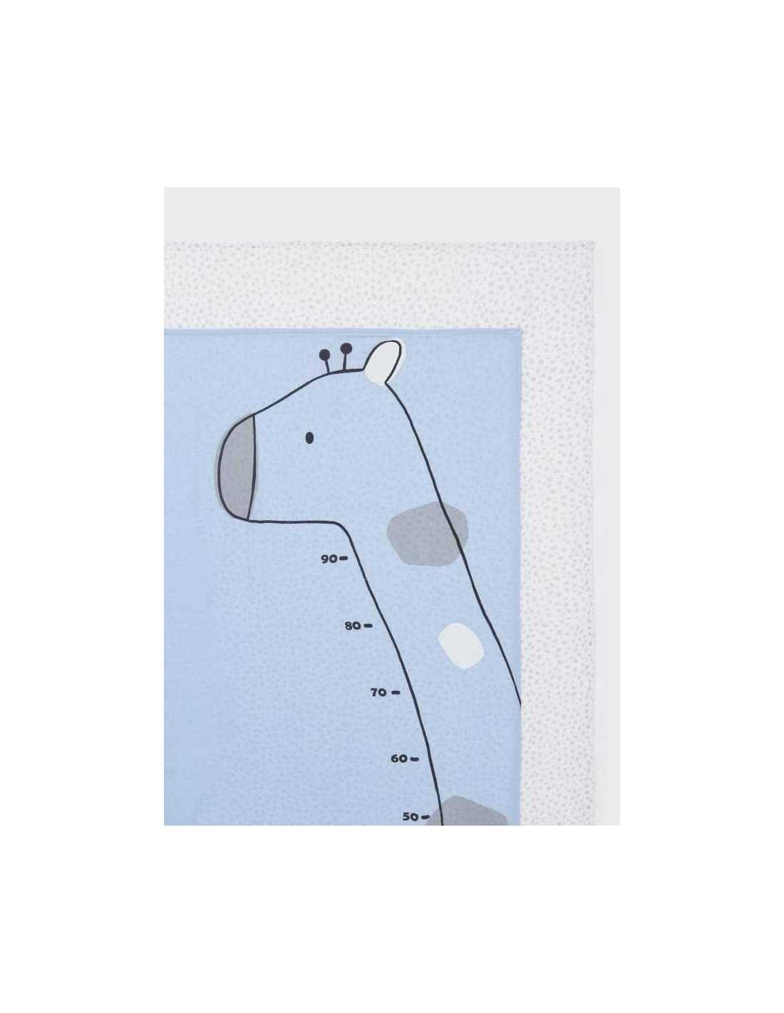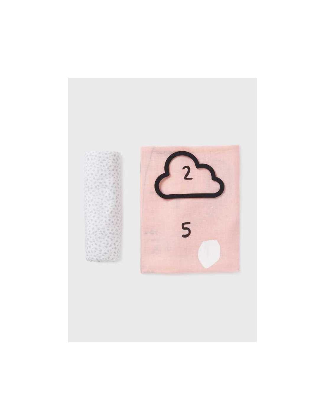 Gasa con accesorio medidor para fotografiar el crecimiento de tu bebé durante su primer año. Tan solo coloca a tu bebé en el centro de la gasa, señala con el indicador sus meses de vida y mide su estatura.