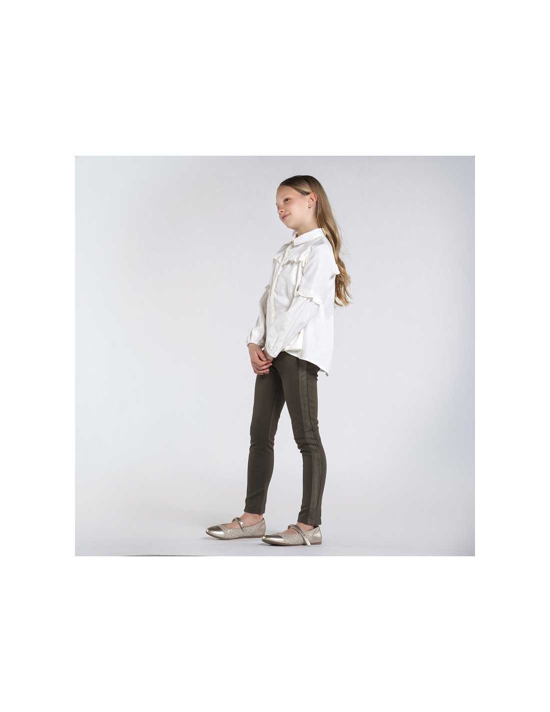 Pantalón de línea casual para chica de 8 a 16 años, con el que conseguirás un look moderno y desenfadado. Goma elástica regulable en la cintura para ajustar el talle. Suave tejido de algodón elástico. Modelo con pinzas.