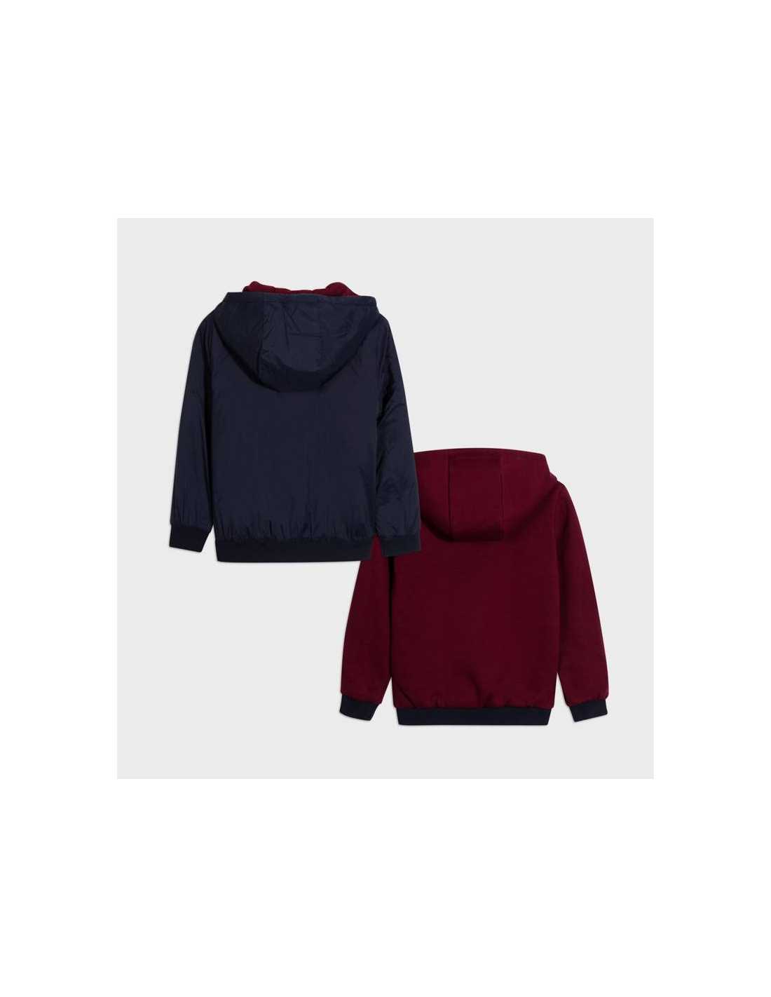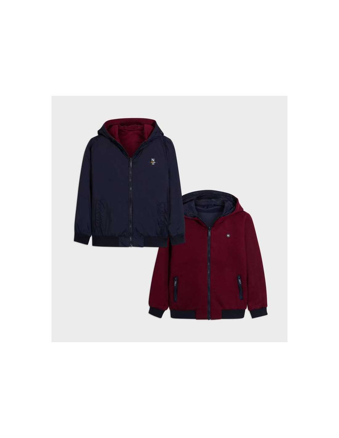Cazadora reversible de manga larga para chico de 8 a 16 años. Cuello alto. Modelo con capucha. Cierre central delantero con cremallera. Ligero tejido técnico transpirable de gran comodidad. Bolsillos funcionales en la parte delantera. Elementos de adorno: apliques de goma.