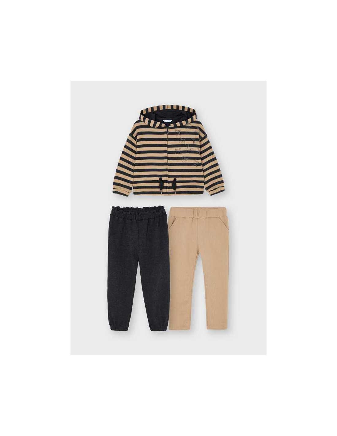 Chándal de tres piezas para niña 2 a 9 Años compuesto por una sudadera y dos pantalones largos.