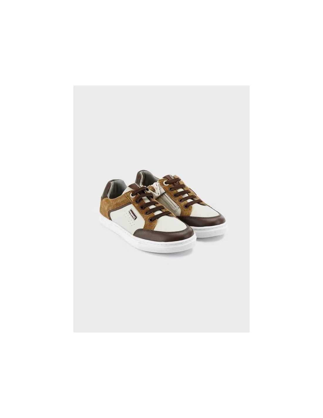 Zapato ECOFRIENDS, la suela está fabricada con material reciclado. Zapatillas deportivas para chico, de gran versatilidad para sus aventuras diarias. Material exterior combinado de piel y otros materiales. Todos nuestros zapatos se realizan con pieles libres de cromo. Suela de goma antideslizante y flexible. Cierre con cremallera lateral para una puesta rápida y sencilla. Refuerzo de piel en la puntera y el talón que garantiza una mayor durabilidad del zapato. Cordones elásticos decorativos. Este modelo también está disponible en las tallas 26 a 30.