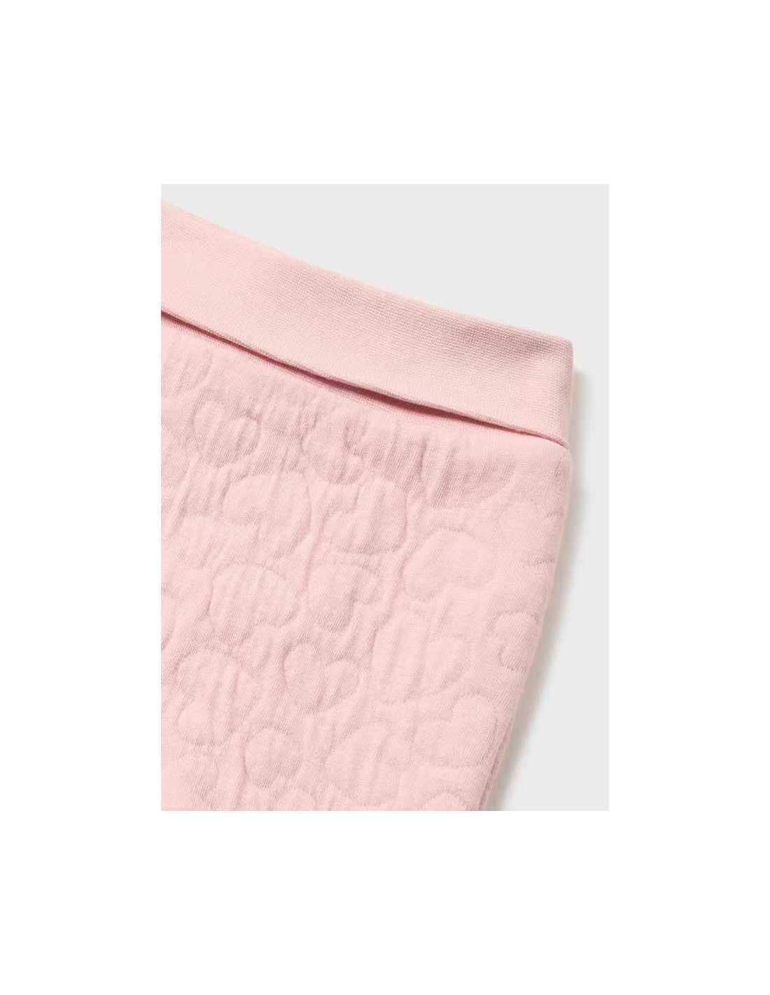 Pantalón con pies tipo polaina. Cinturilla elástica. Exterior textil con efecto acolchado. Cinturilla doble con vuelta. En este modelo las tallas mayores (de 6-9 a 18 meses) no llevan pies, para facilitar una mejor movilidad del bebé y mayor confort en el uso.