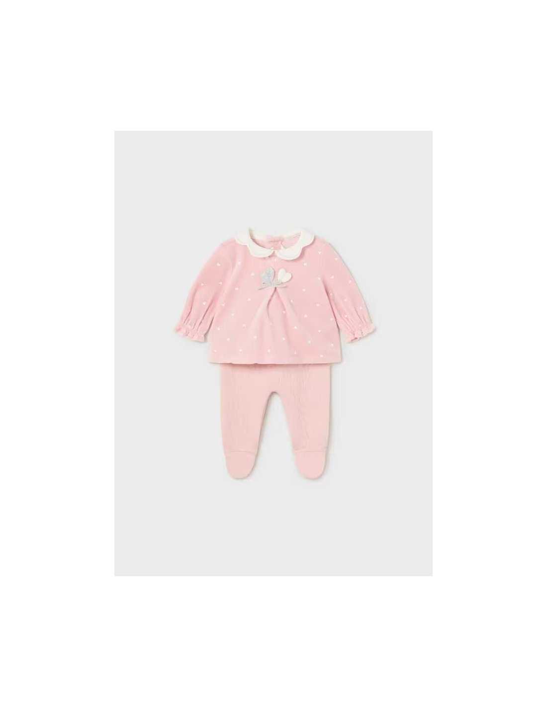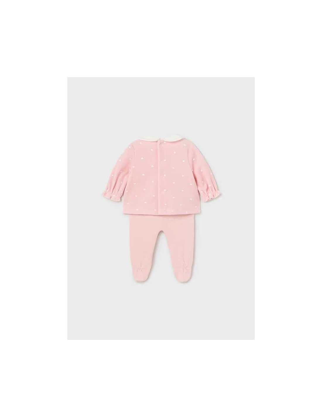 Conjunto de dos piezas para recién nacido compuesto por una camiseta de manga larga y polaina a juego.