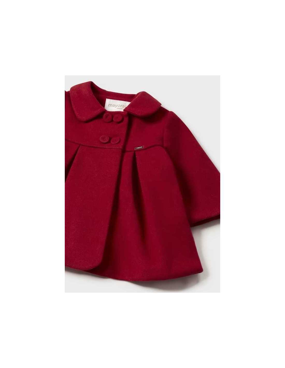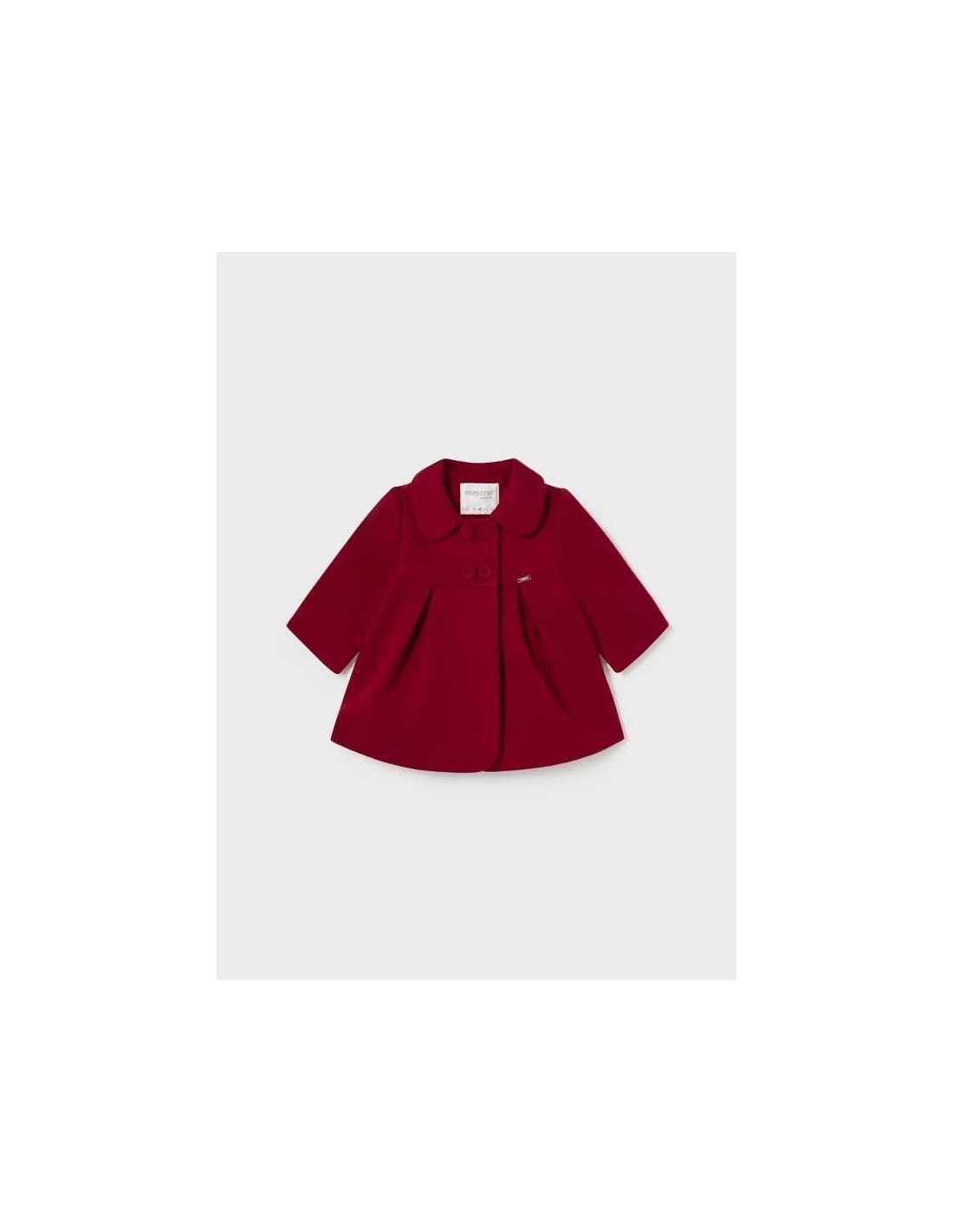 Abrigo de manga larga para recién nacido. Cuello bebé. Cierre con botones en la parte delantera. Cálido tejido de paño resistente y clásico.