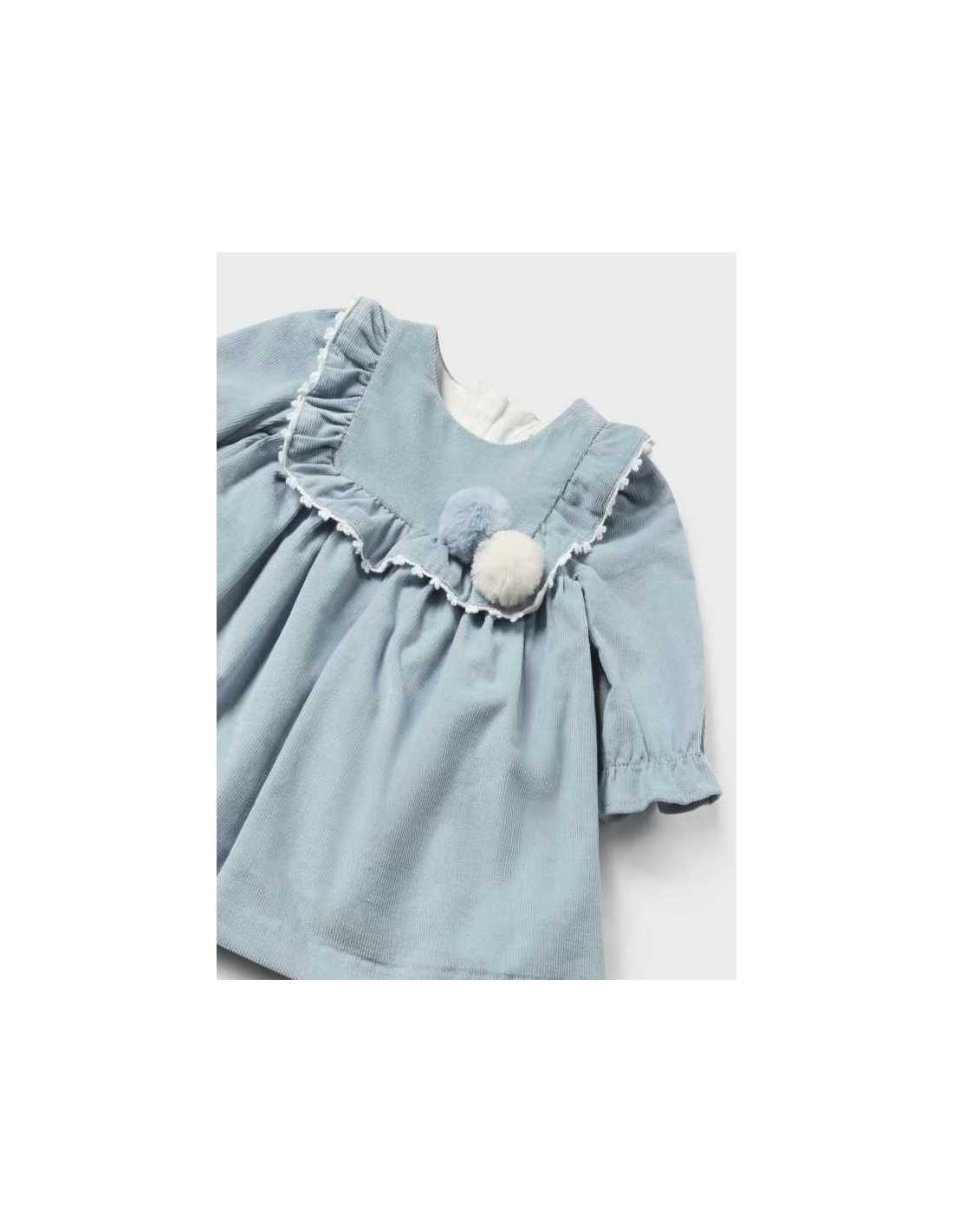 Vestido micro pana bebe niña ,manga, larga 0 a 18 meses. Mayoral.