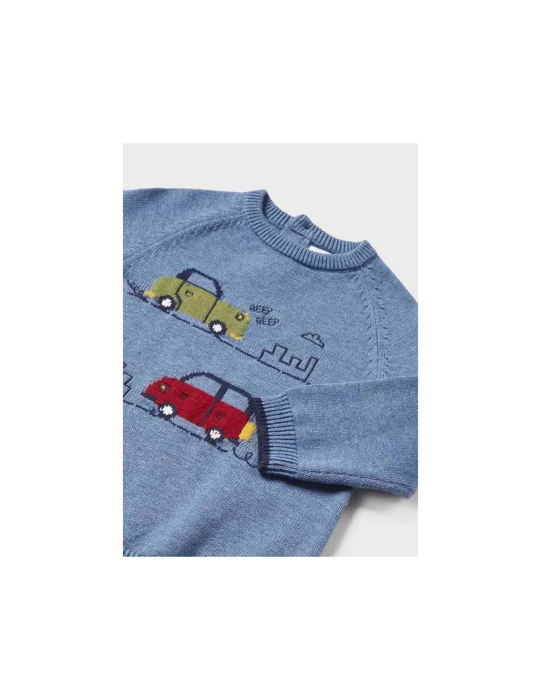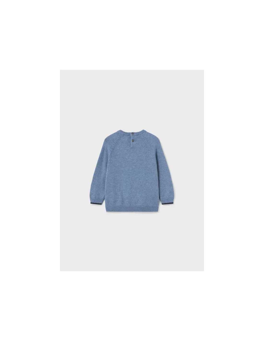 Jersey de manga larga para bebé con detalles a contraste. Cuello redondo. Cierre con botones en la espalda para facilitar la puesta de la prenda. Tejido de punto con lana. Dibujo tejido con técnica intarsia.