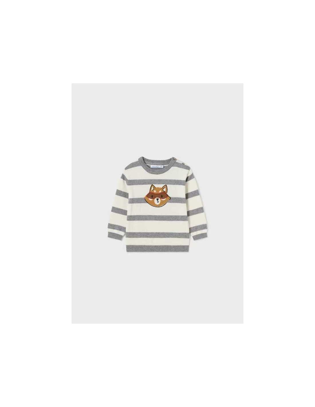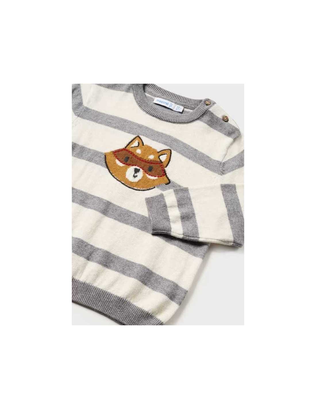 Jersey de manga larga para bebé. Cierre con botones en el hombro. Tejido de punto con lana. Elementos de adorno: bordado. Dibujo tejido con técnica intarsia.