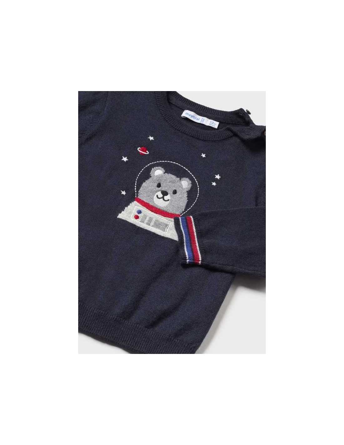 Jersey de manga larga para bebé. Cierre con botones en el hombro. Dibujo tejido con técnica intarsia.