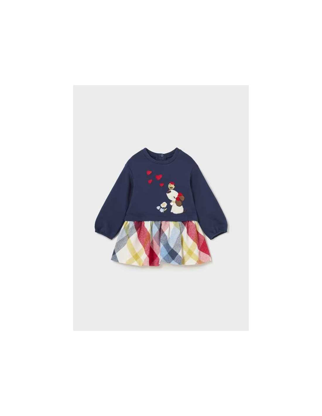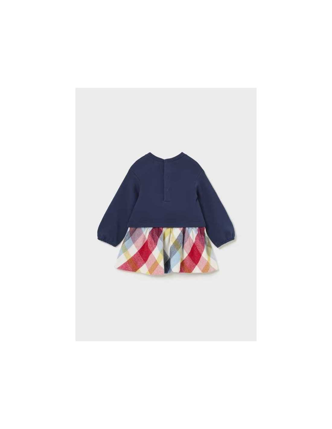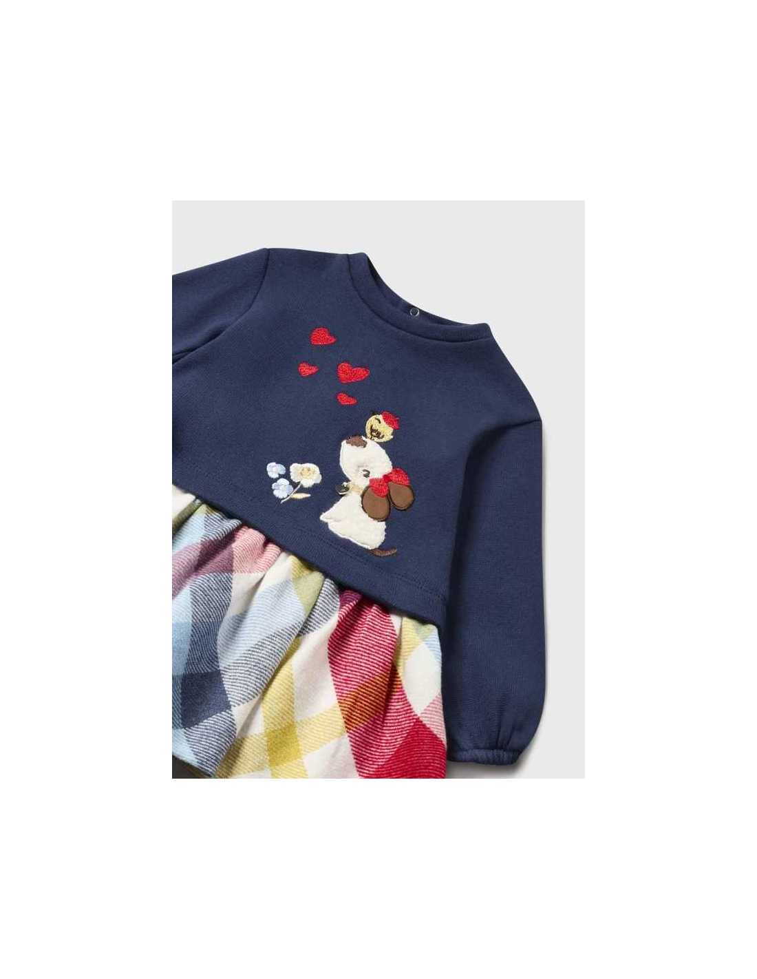 Vestido combinado estampado cuadros bebé .manga larga motivo apliques 12 a 36 meses mayoral
