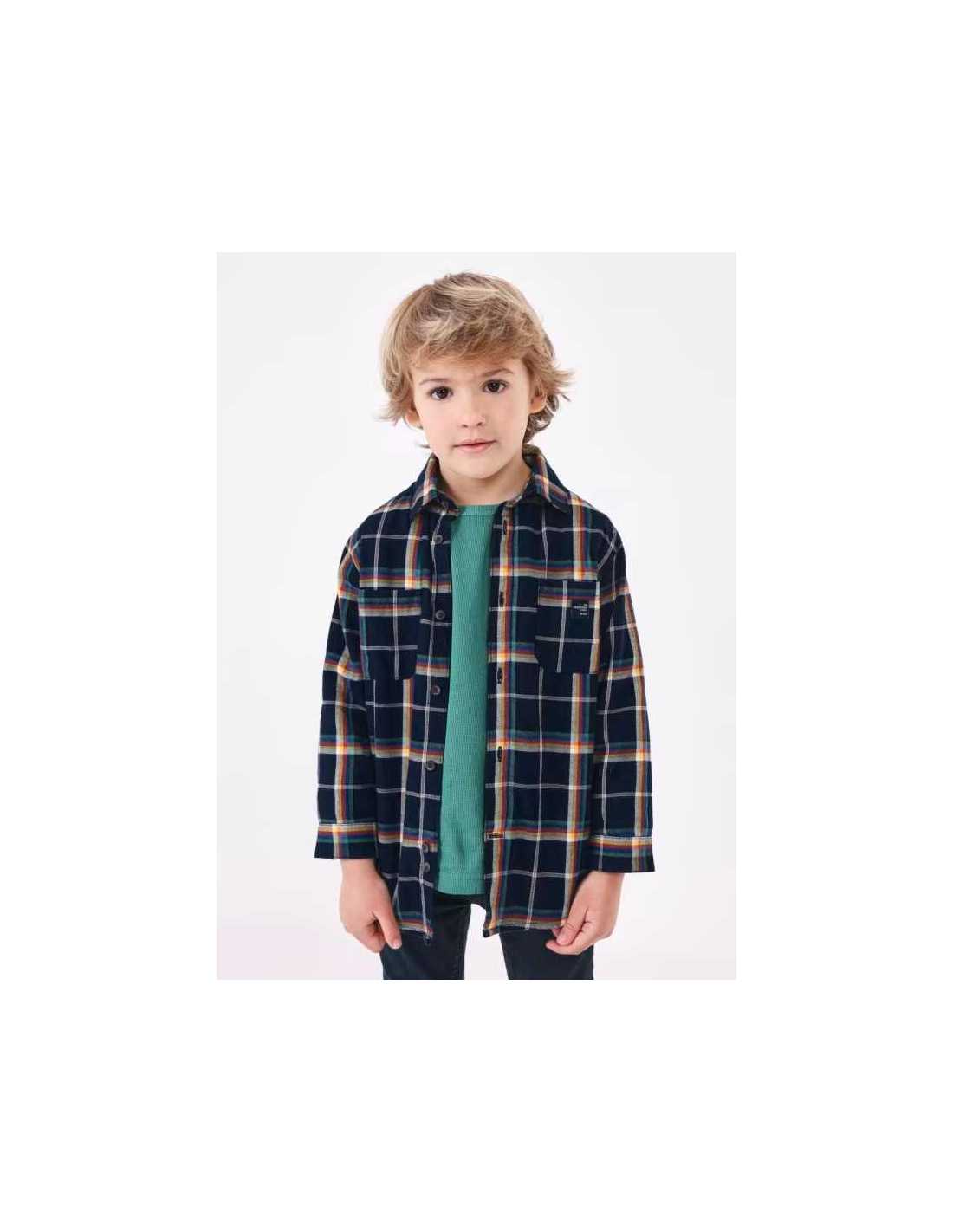 Sobrecamisa de manga larga para niño. Cierre con botones en la parte delantera. Cálido y suave tejido de viella. Bolsillo funcional en la parte delantera. Motivo de cuadros.